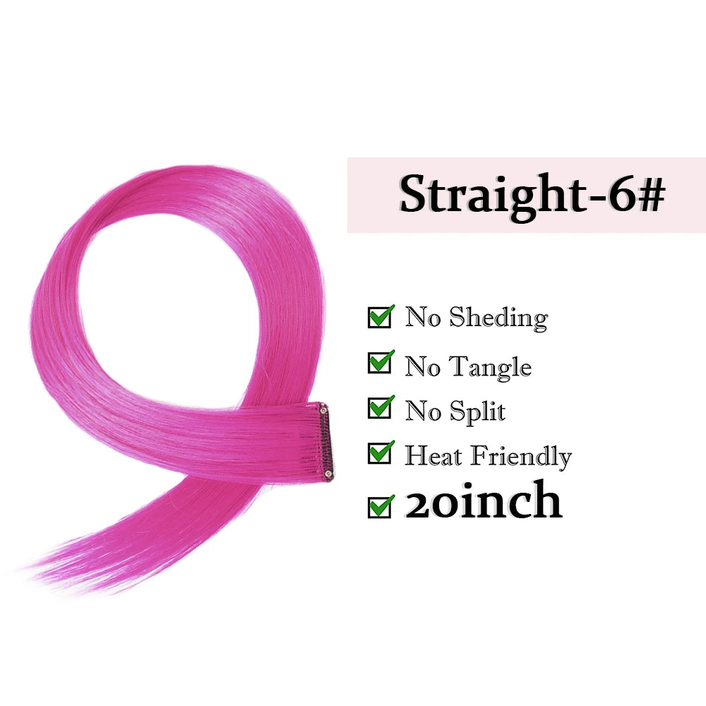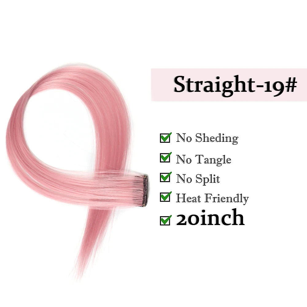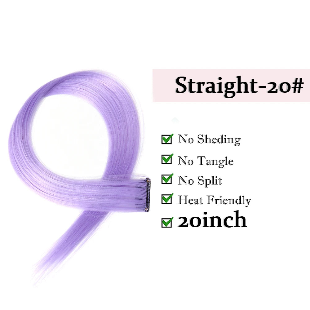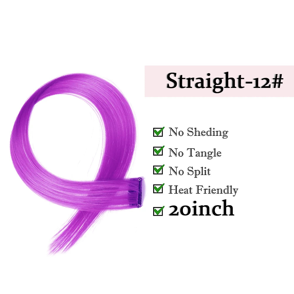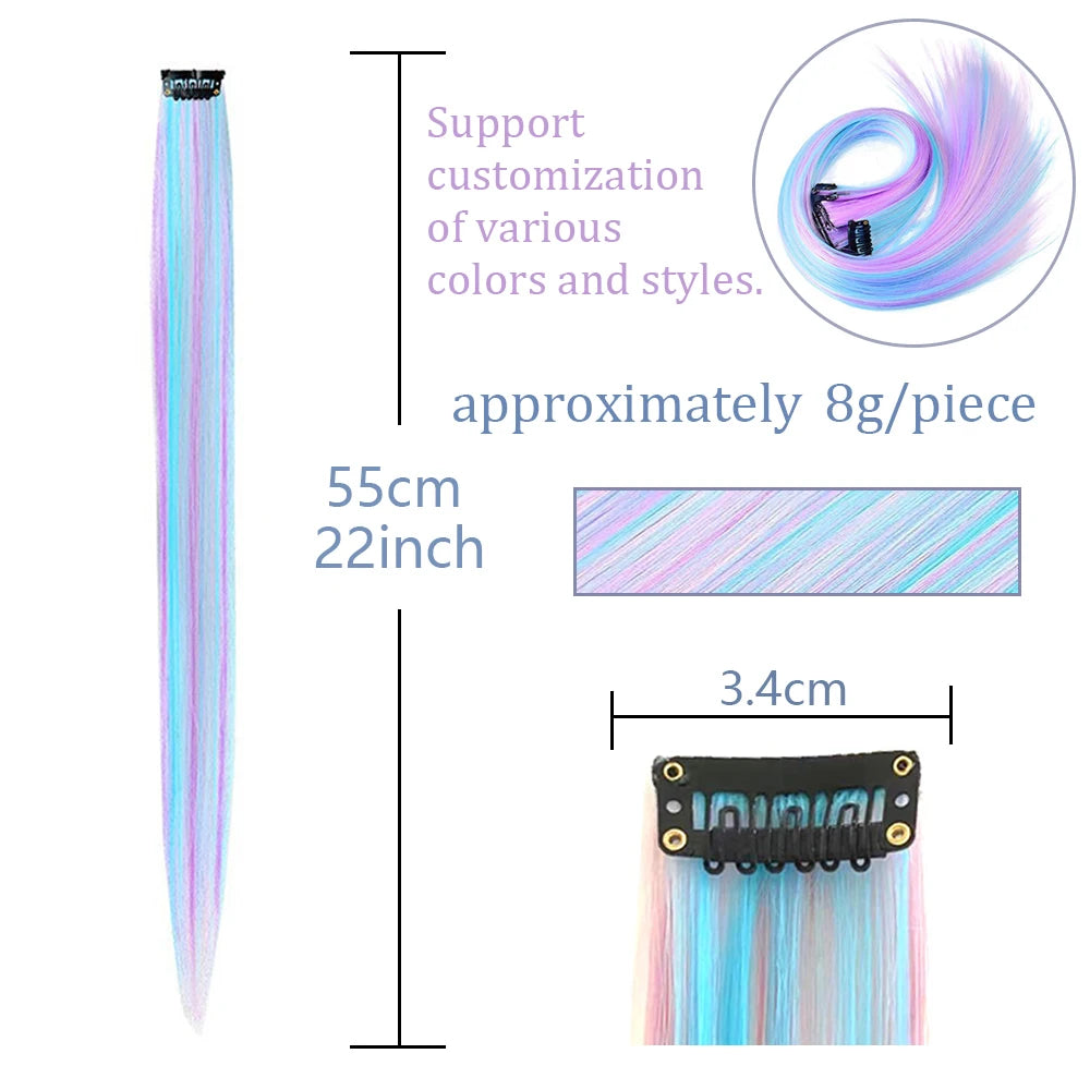 22" Long Straight Synthetic Clip-In Hair Extensions - Purple Pink Red - Heat Resistant Hairpieces for Women
