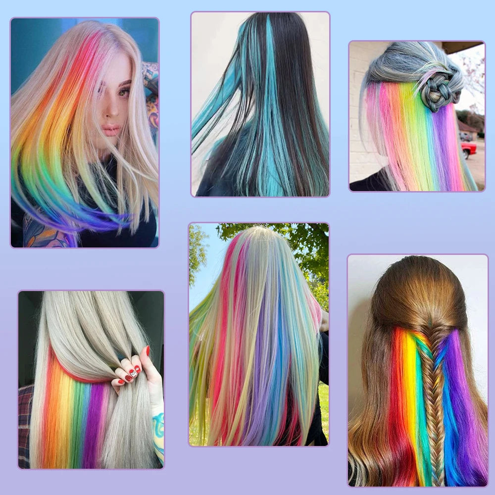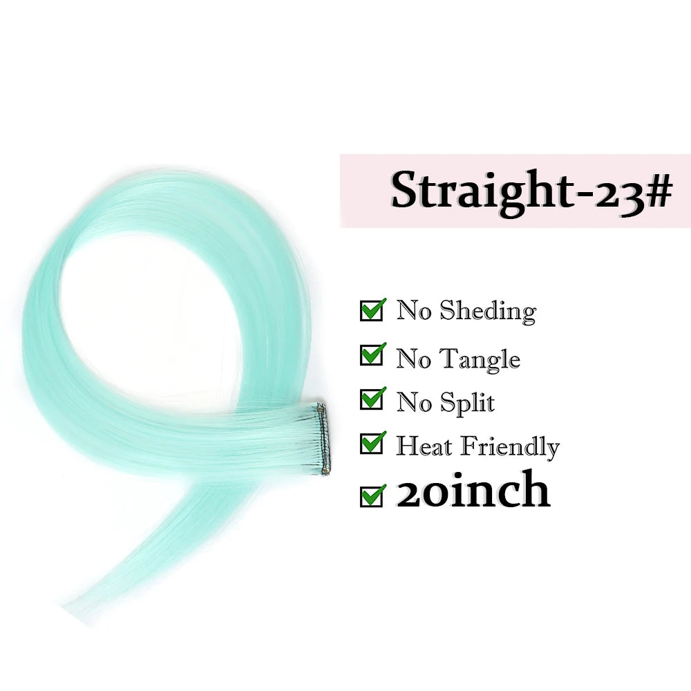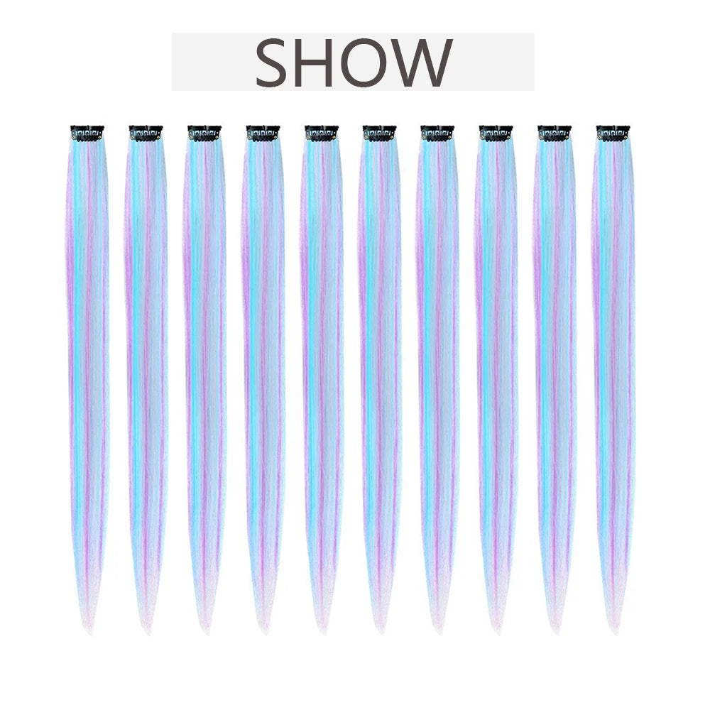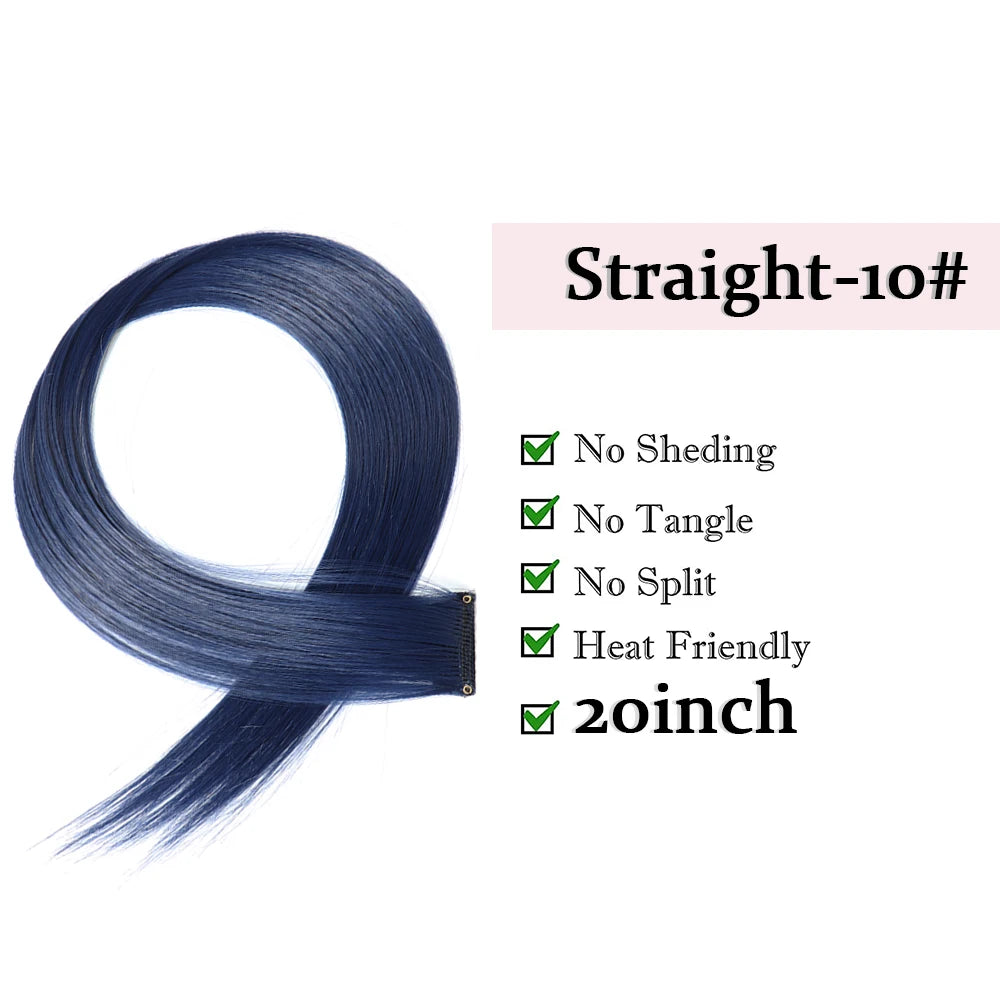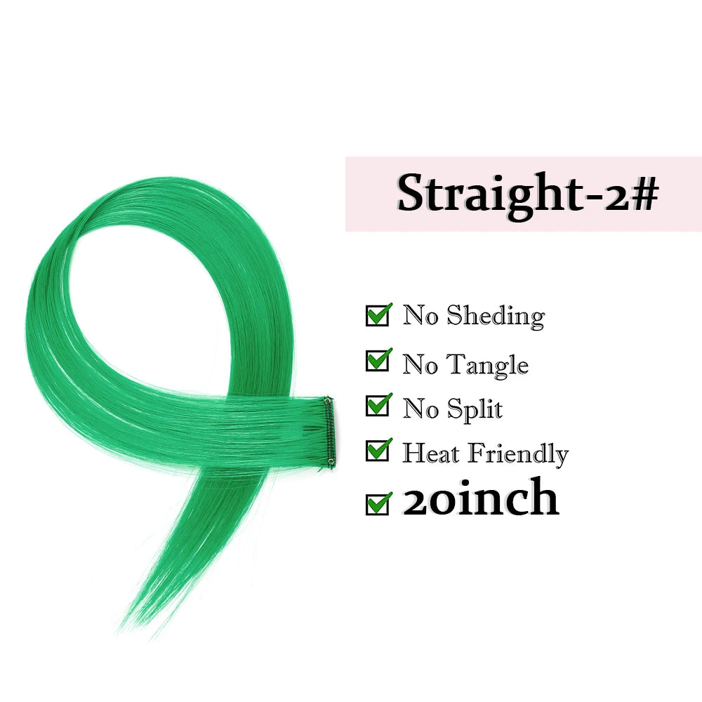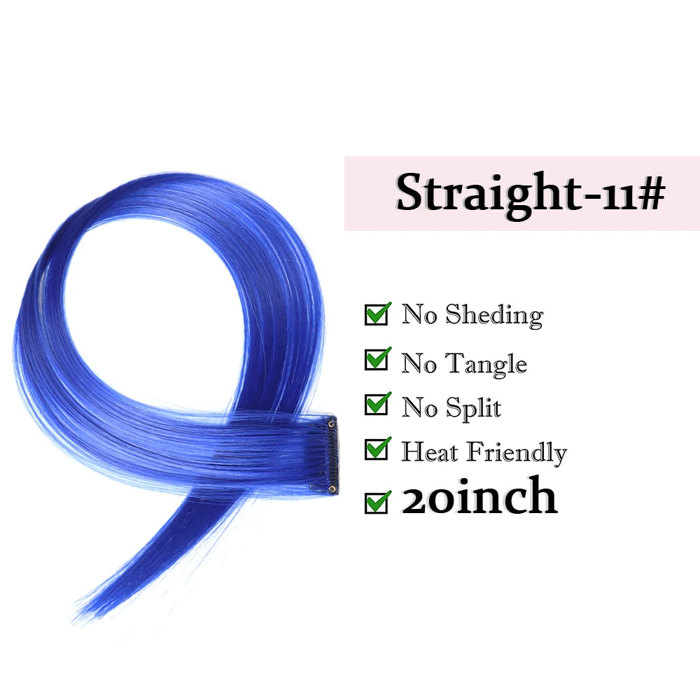 22" Long Straight Synthetic Clip-In Hair Extensions - Purple Pink Red - Heat Resistant Hairpieces for Women