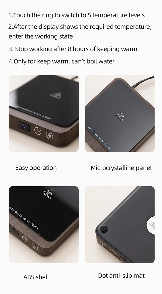 220V Electric Coffee Mug Warmer 20W Cup Heater Hot Plate 5-Temperature Heating Pad for Tea and Milk