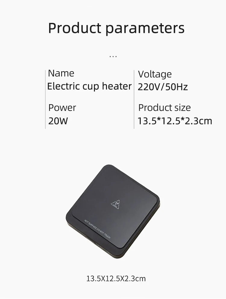 Introducing the energy-efficient Water Heater Coaster, designed to keep your beverages warm with ease. Compact and stylish, this coaster is ideal for home or office use, ensuring your drinks are at the perfect temperature whenever you need them. With a power output of 20W and a voltage of 220V, it heats efficiently while maintaining safety standards. Its convenient size of 13.5*12.5*2.3cm fits comfortably on any desk or countertop. Enjoy warmth without worrying about harmful chemicals, as this product boasts a CE certification and contains no high-concern chemicals. Please note, accessories are not included.