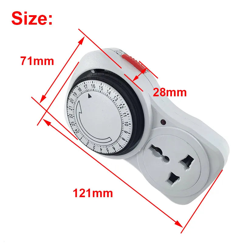 24-Hour Mechanical Timer Switch Socket, 230V, 3500W, 16A, Universal Plug EU/UK/US
