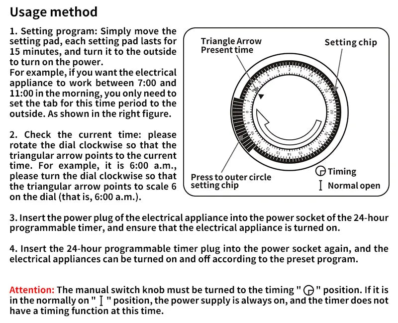 - Functionality: 24-hour timing cycle