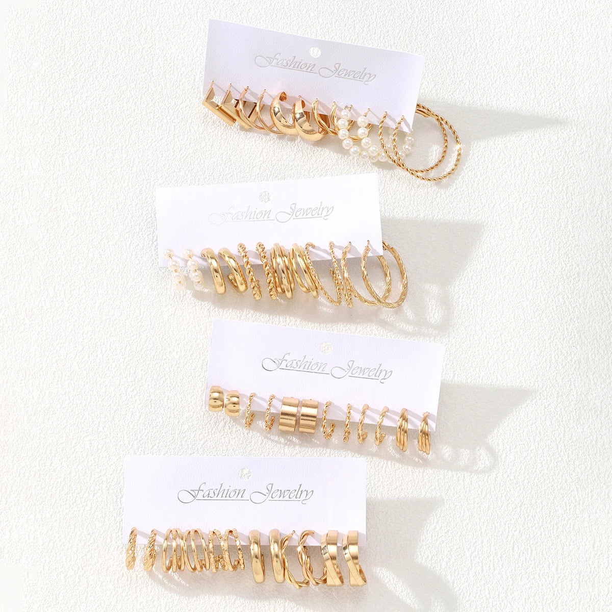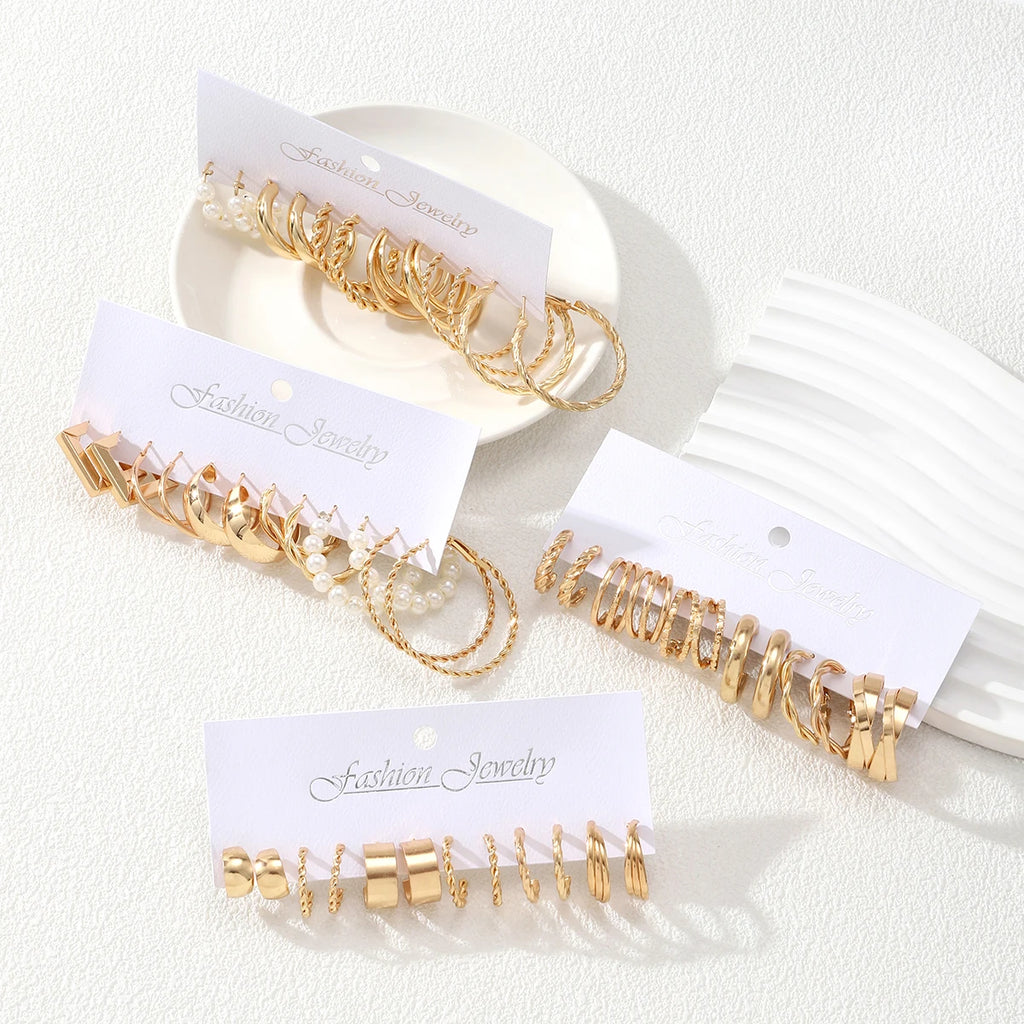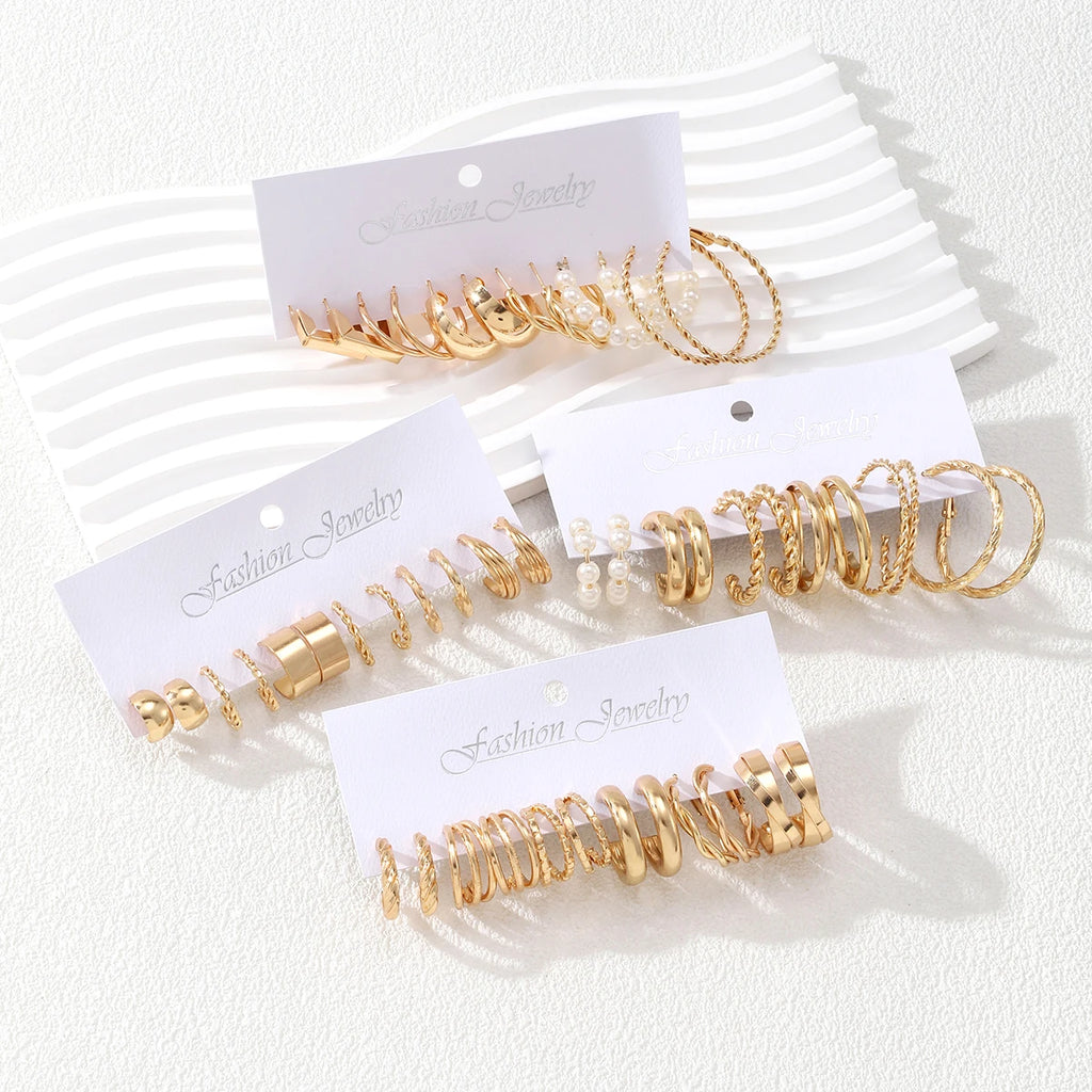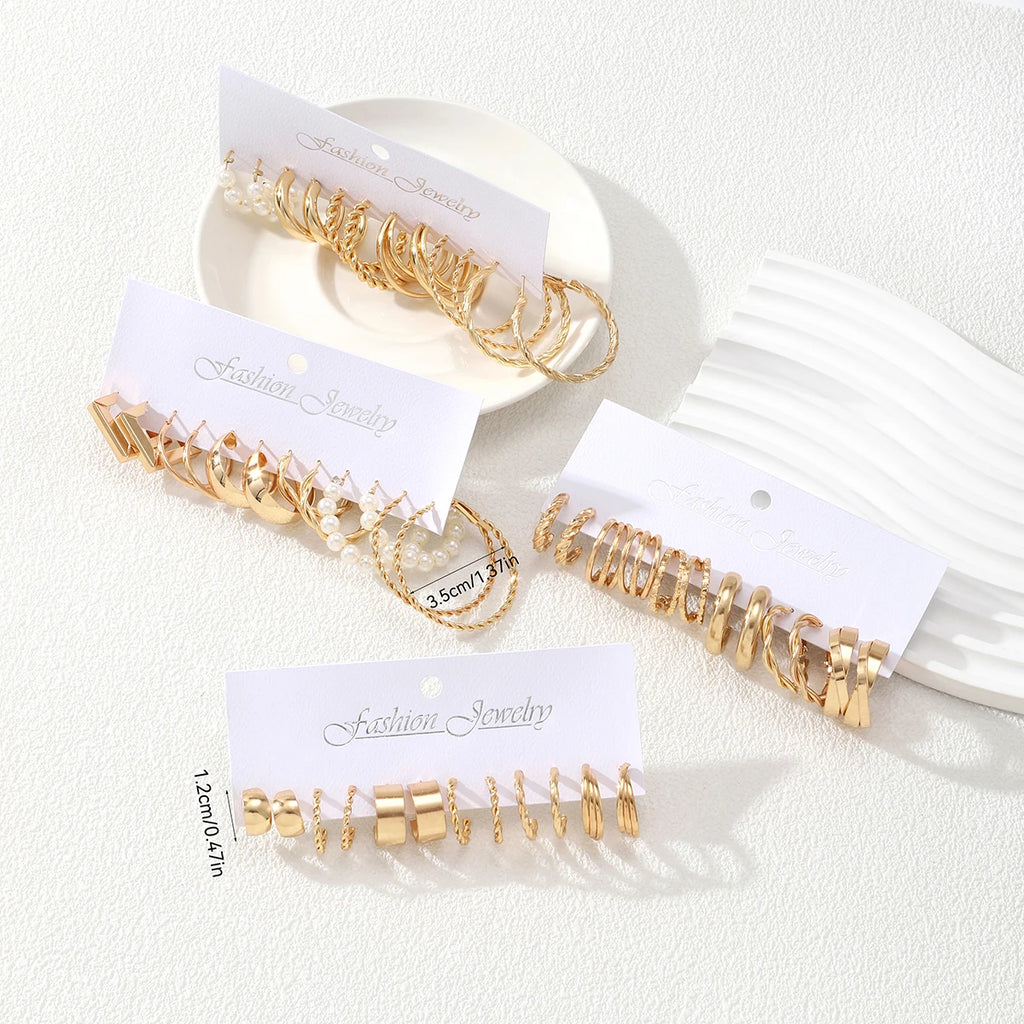 Bohemian Twisted Metal Hoop Earrings Set, 24 Pairs - Women's Vintage Geometric Aesthetic Jewelry for Parties & Trends