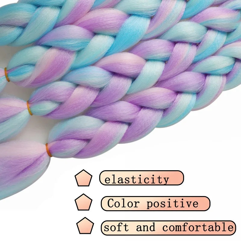 24" Ombre Rainbow Jumbo Braids Hairpiece - Long Straight Synthetic Crochet Hair for Women