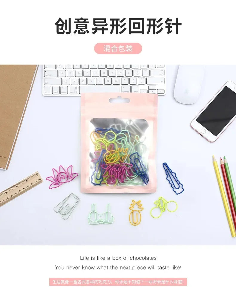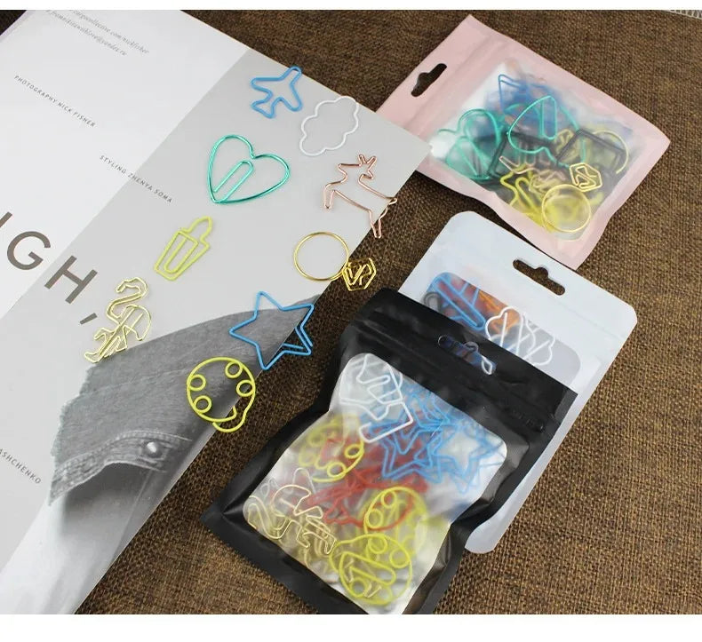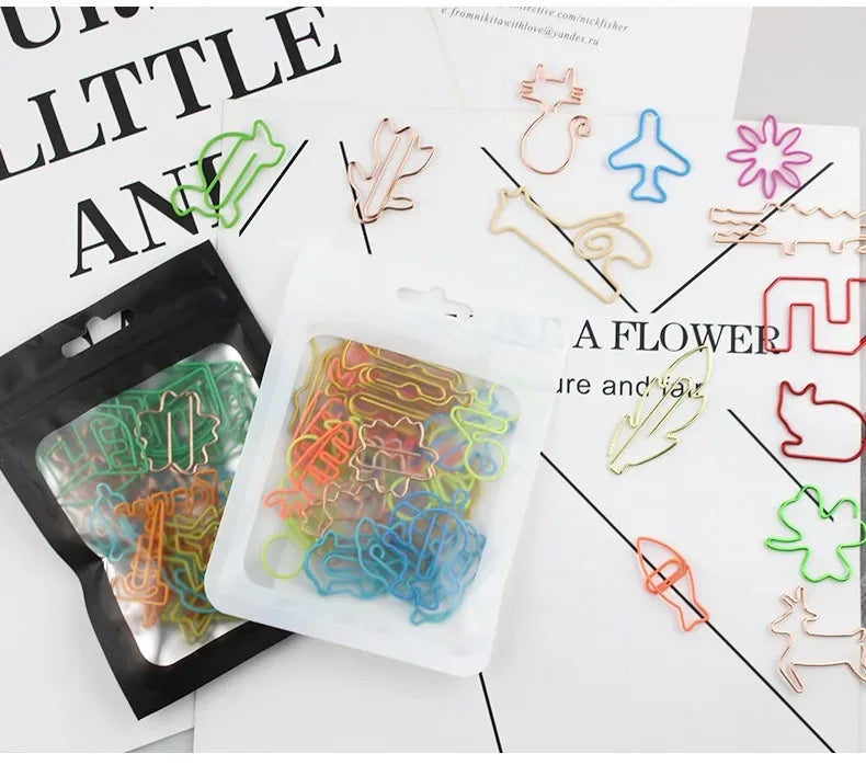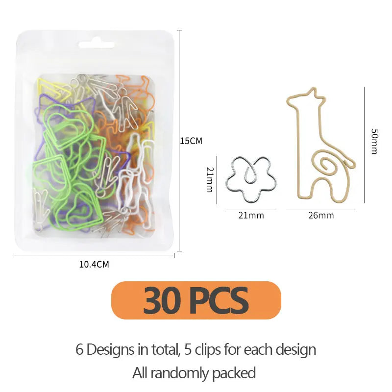 Introducing our versatile 30 PCS Paper Clips, designed to add a touch of creativity to your organizing needs. Made from durable metal, these clips come in a delightful mix of animal, fruit, geometric, and home & living designs, ensuring you find the perfect match for any occasion. Each pack contains a random assortment of 30 clips, with six unique designs and five items for each design, offering a charming variety. Measuring between 2 to 4 cm, these clips are just the right size for managing documents effortlessly. With a package weight of only 40g, they're lightweight and convenient to carry. The vibrant mixed colors make them not only functional but also a lively addition to your stationery collection.