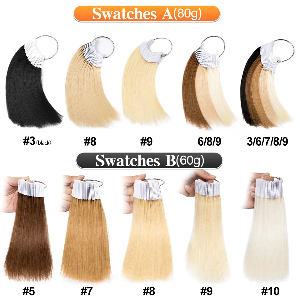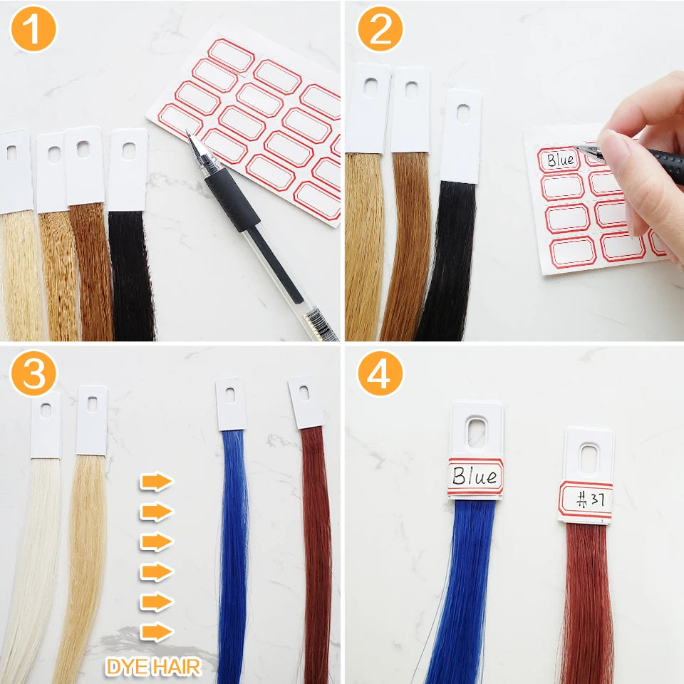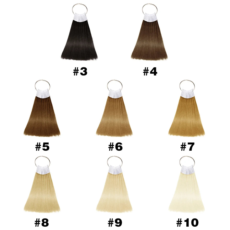Enhance your salon services with our 30-piece Human Hair Color Ring Swatch Set. Perfect for hairdressers and stylists, these 8-inch test strands are crafted from 100% real human hair, ensuring a natural and authentic feel. Durable and reusable, these swatches can be dyed, straightened, curled, washed, and even cut, giving you maximum flexibility to demonstrate a wide array of styles and colors to clients. Each strand is clearly marked for easy identification and organization, making them an essential tool for any professional hairdressing setup. Experience the soft, glossy texture that mirrors healthy, well-maintained hair, ensuring your consultations are as realistic as possible.