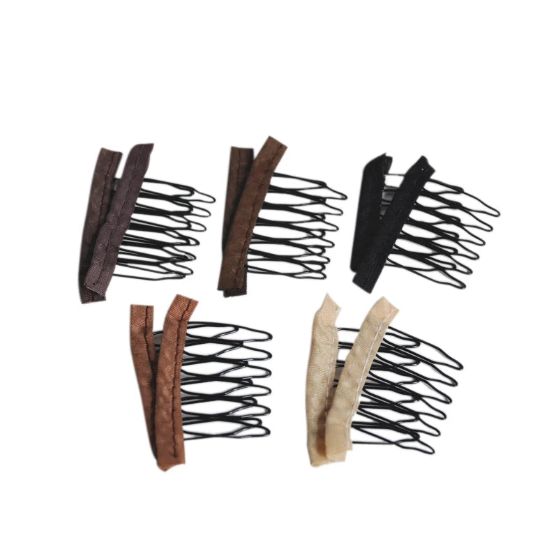 Introducing our versatile Wig Combs and Clips, designed to enhance your wig-wearing experience. This 30-piece set includes 6-tooth combs, perfect for securing wig caps with ease. Available in a palette of five colors—Black, Dark Brown, Brown, Light Brown, and Beige—these combs blend seamlessly with any style or shade. Crafted from durable black steel, they ensure a secure hold and long-lasting performance.