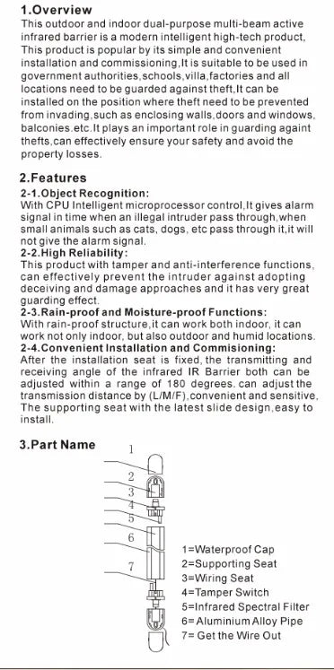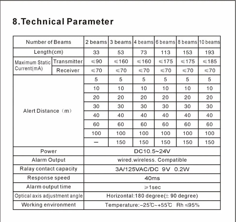 - Alarm Type: Infrared Barrier