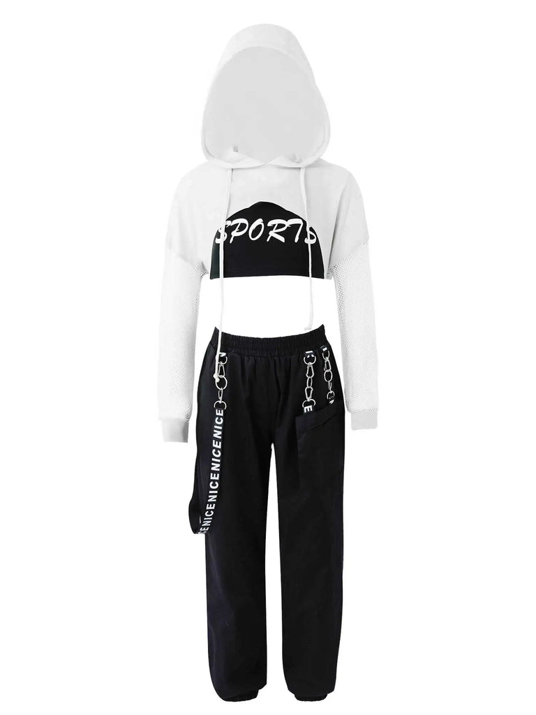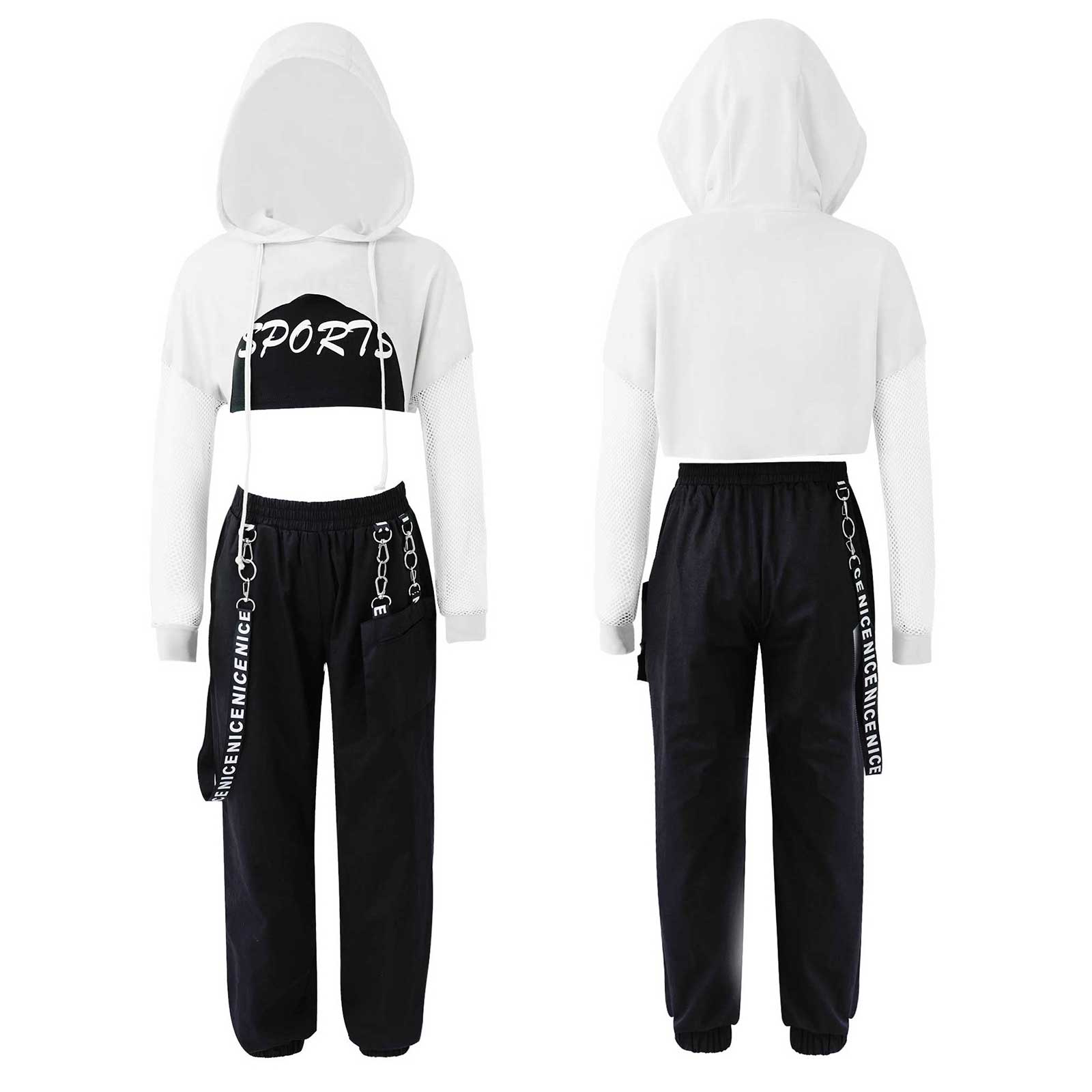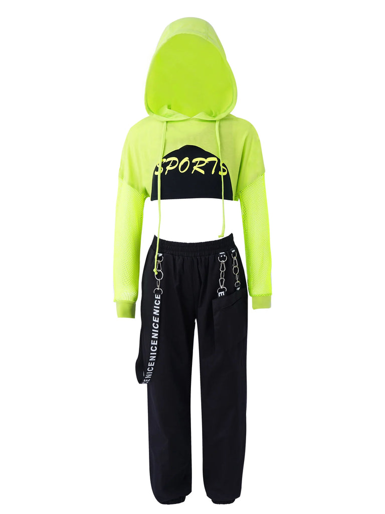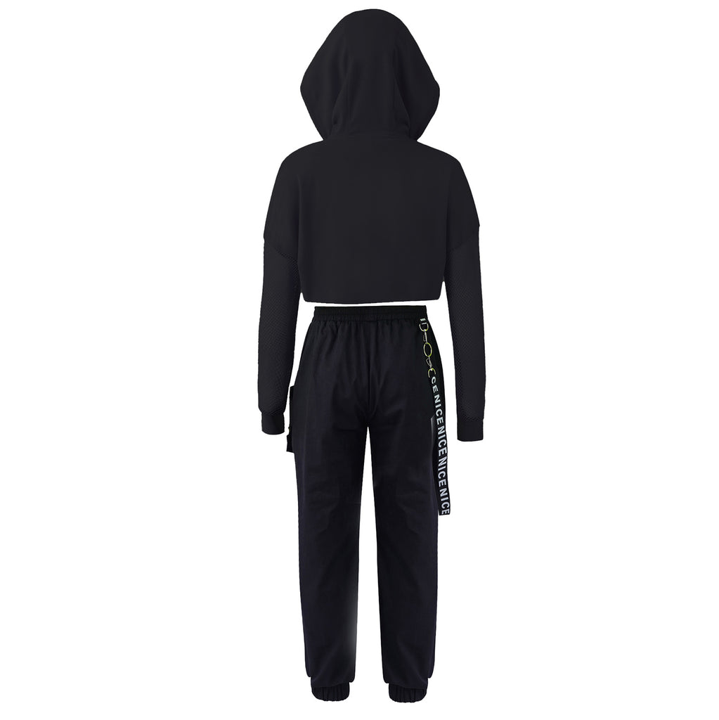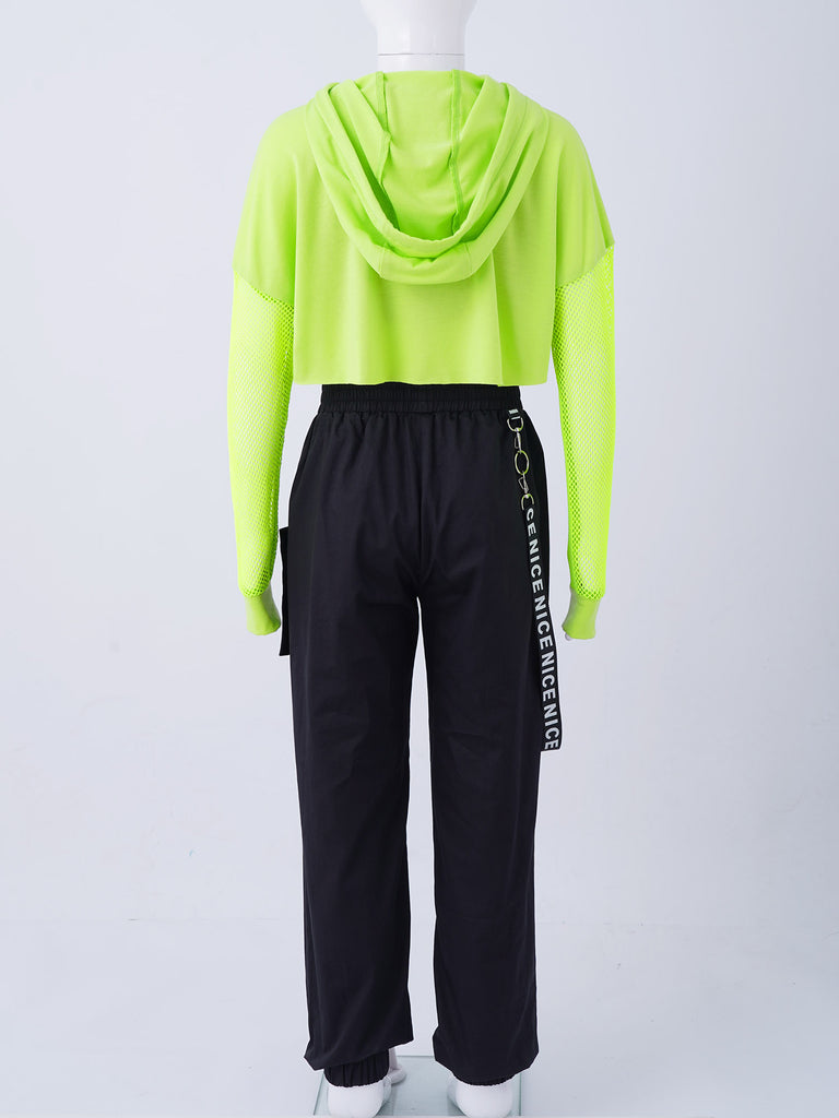3pcs Kids Hip Hop Dance Costume Set: Hooded Top, Net Cover Up, Crop Tank & Pants