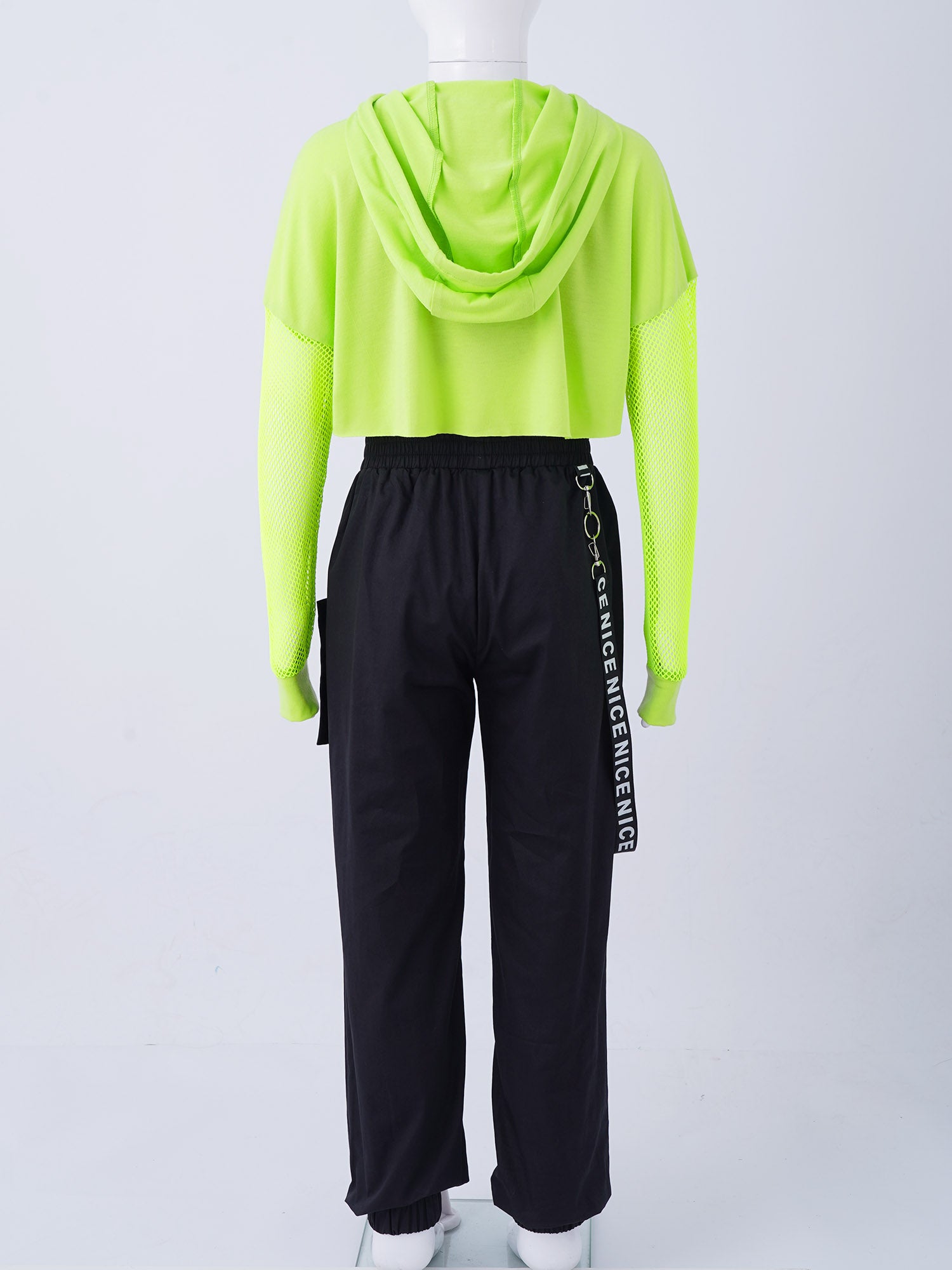 - Set Includes: Hooded Net Cover-Up Top, Crop Vest, Pants