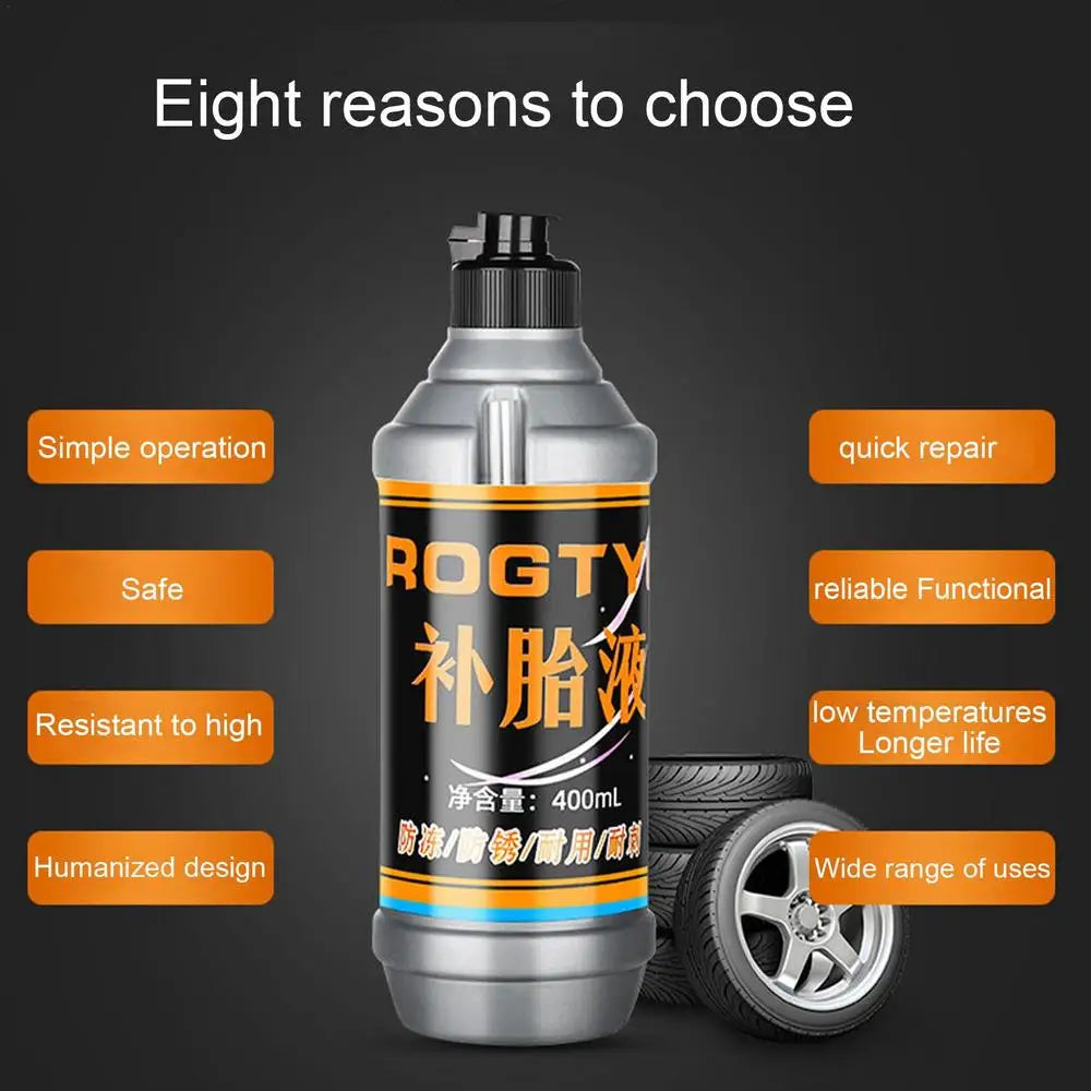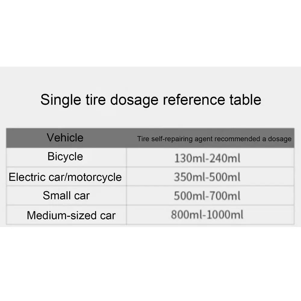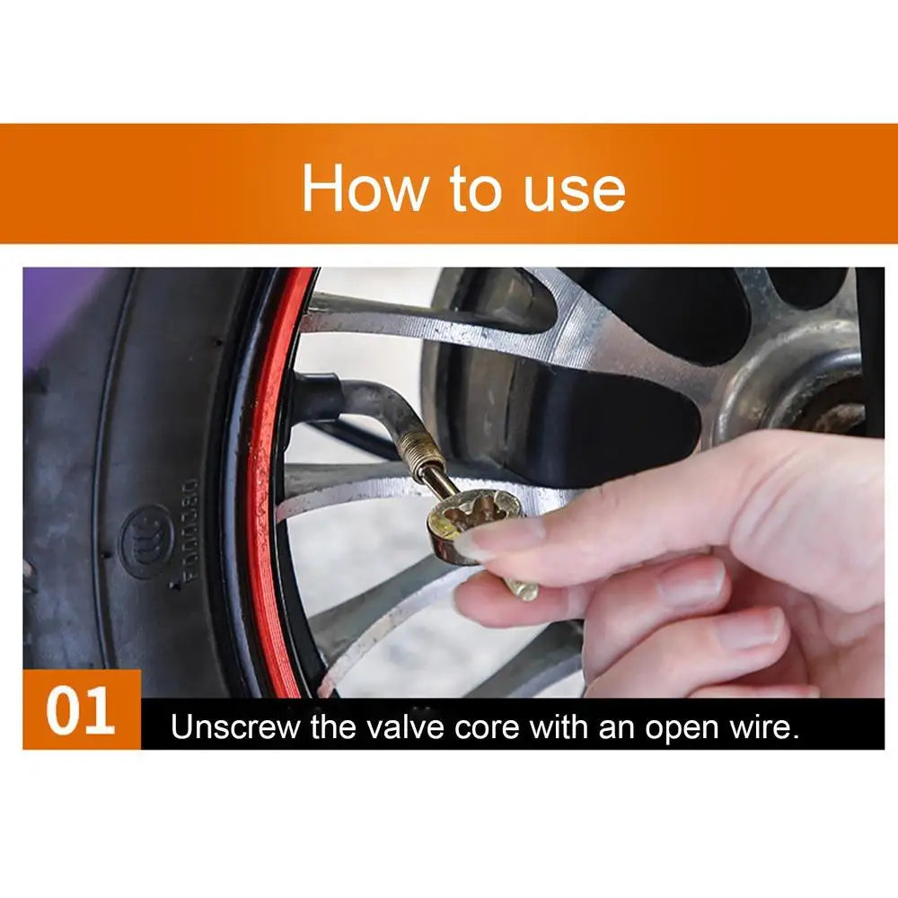 Effortlessly fix punctured tires with our 400ml Tire Sealant. Designed for quick and efficient repairs, this sealant is perfect for small to medium-sized wheeled vehicles, such as bicycles, motorcycles, and cars. No need for complicated tools or professional skills—simply inject the sealant into the tire valve, inflate, and you're back on the road.