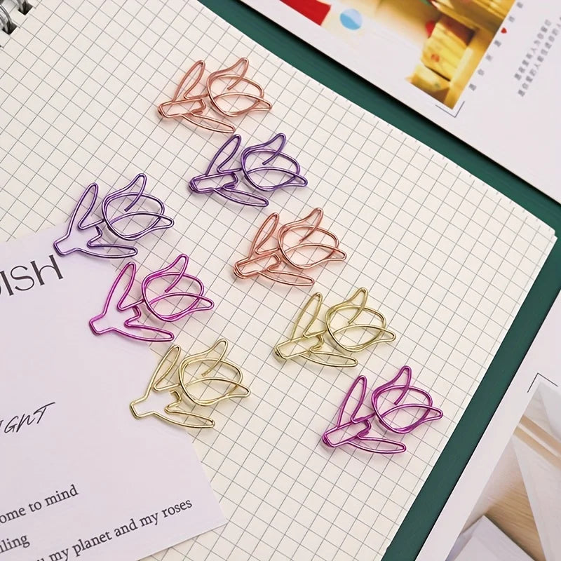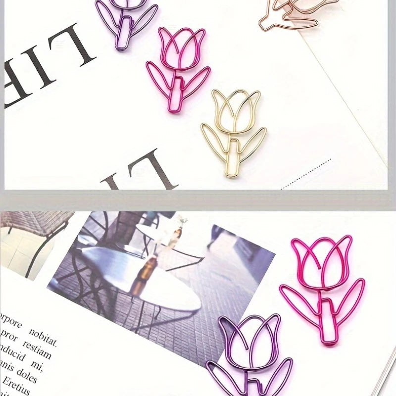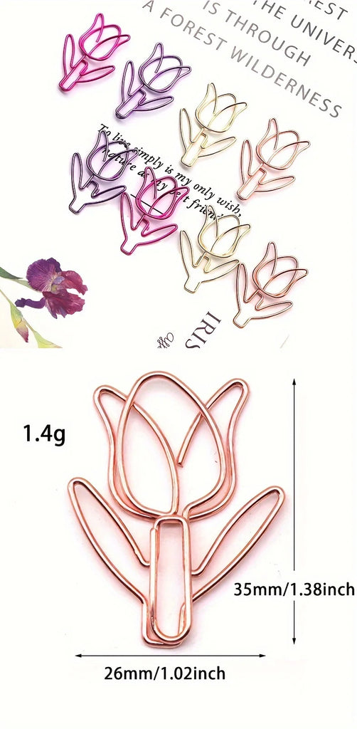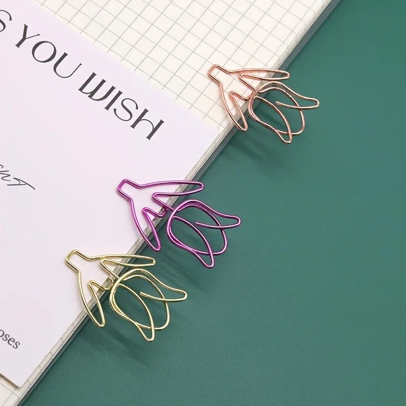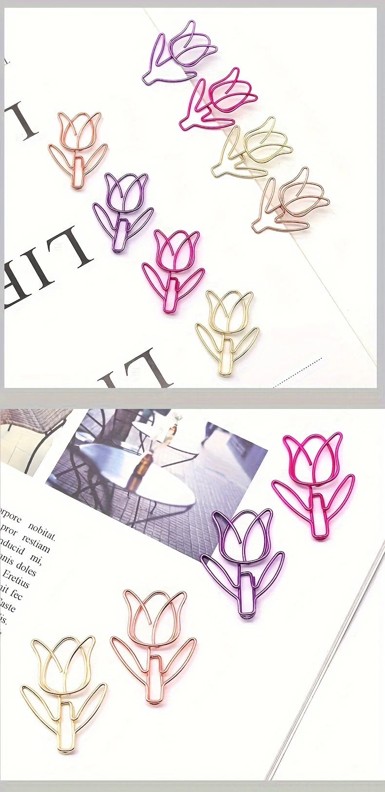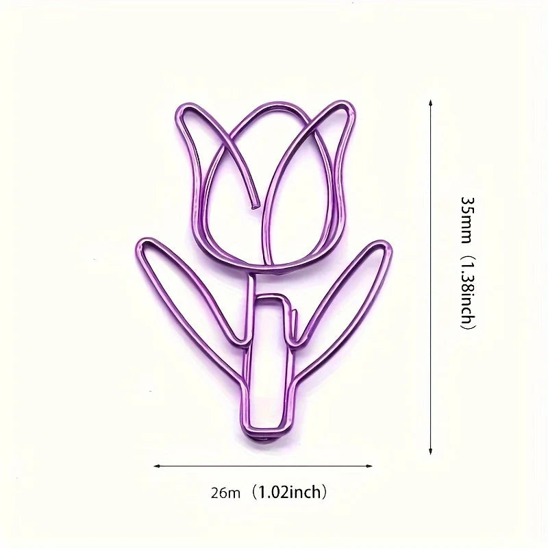 Introducing our adorable tulip-shaped paper clips, a creative addition to your stationery collection. These charming metal clips are designed in playful floral and cartoon shapes, adding a touch of fun and creativity to your office supplies. Perfect for organizing documents, these unique clips are as functional as they are decorative, turning everyday tasks into delightful experiences.