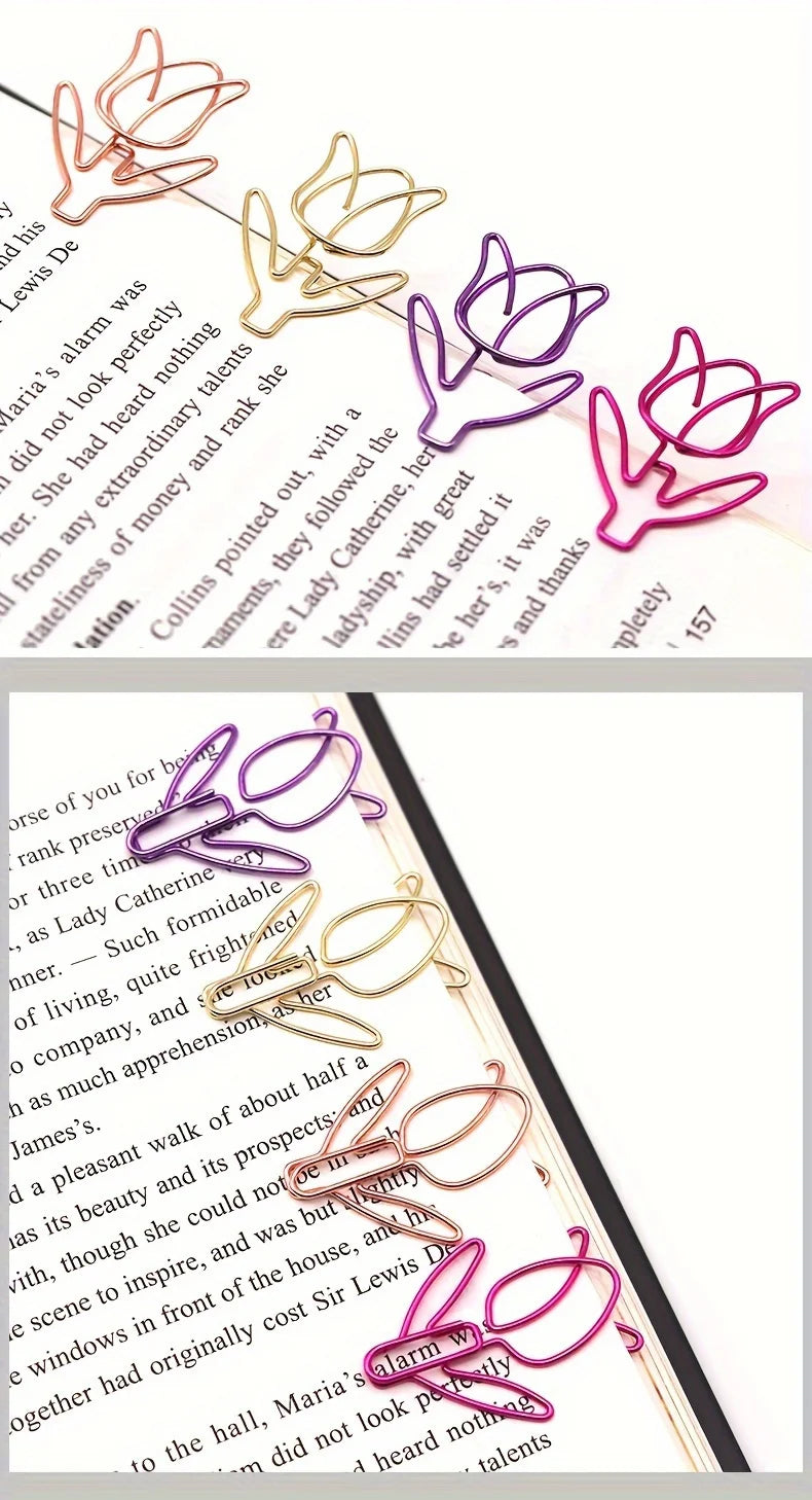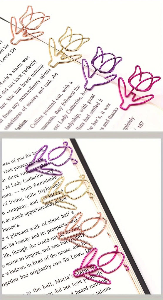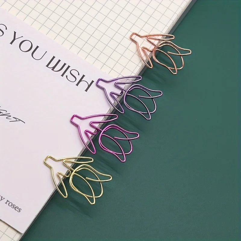 40pcs Cute Tulip Flower Paper Clips Creative Stationery Office Metal Clips