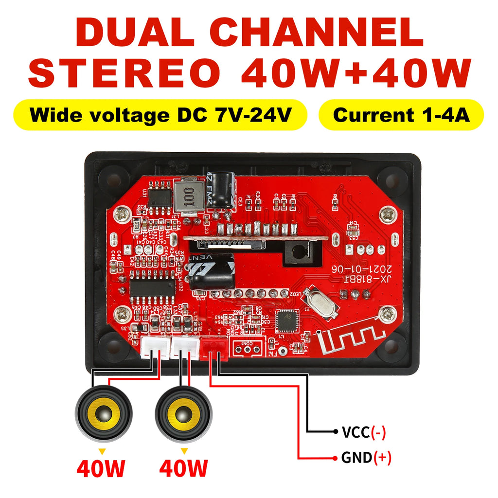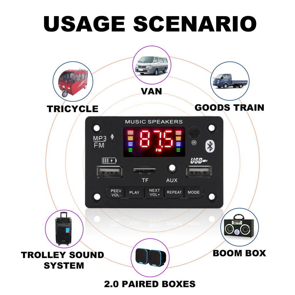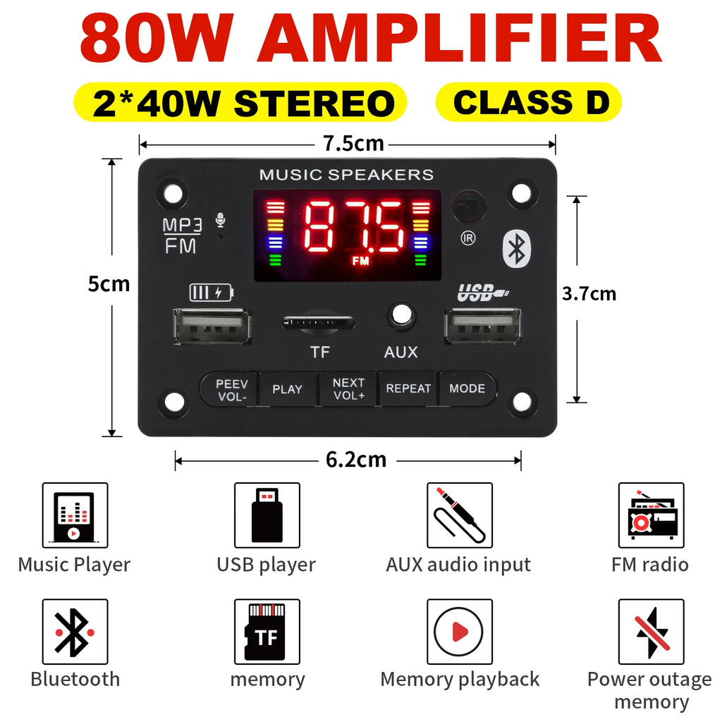 40W Bluetooth 5.0 Amplifier Decoder Board 12V Car USB MP3 Player TF Slot FM Mic