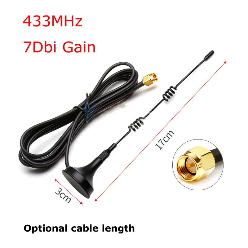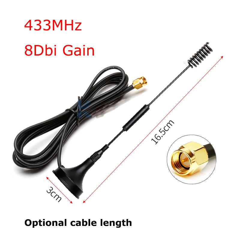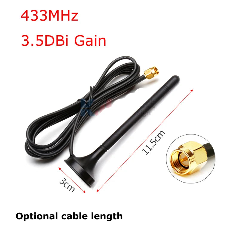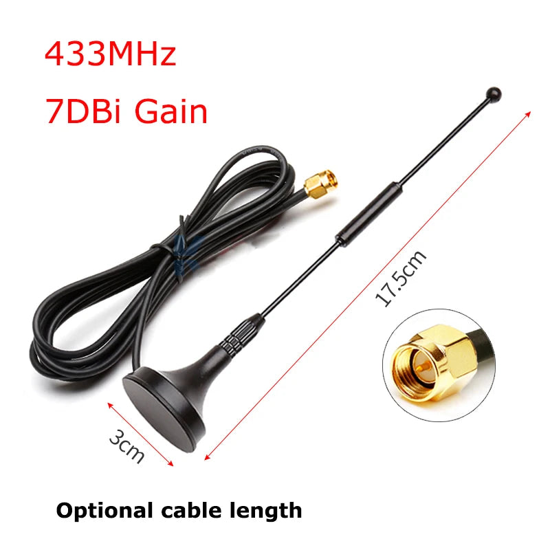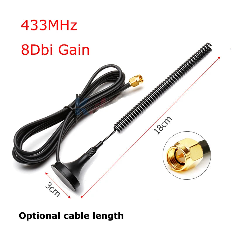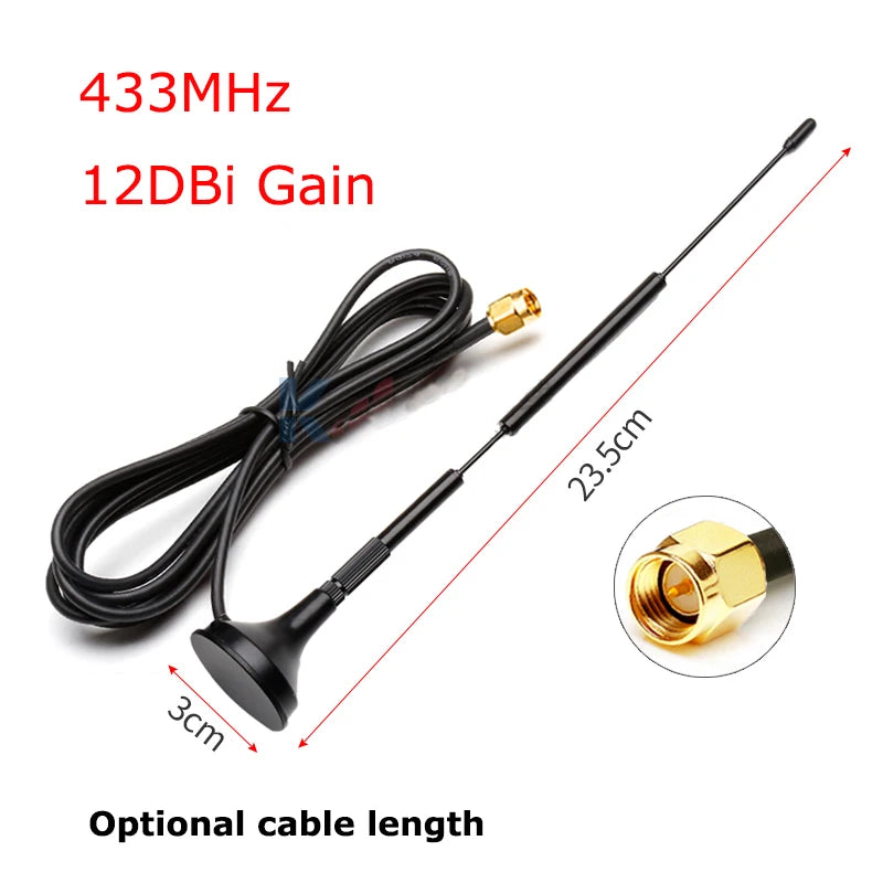The 433MHz Antenna by new is a versatile and high-performance antenna designed for clear signal transmission and reception. Tailored to deliver optimal performance, this antenna boasts a gain range of 3-12Dbi and operates efficiently at a frequency of 433MHz. It features a vertical polarization and a robust power handling capacity of 50W, ensuring stable connectivity for your devices.