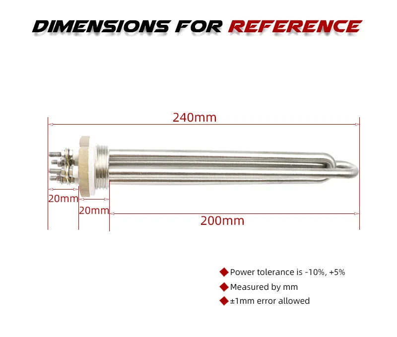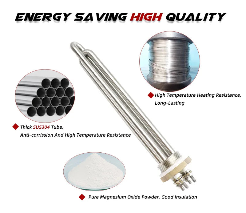Introducing the 48V 1500W DC Water Heater Immersion Element, a versatile and efficient solution for a variety of heating needs. Crafted from high-quality SUS304 stainless steel, this electric heater is designed for optimal performance and durability.