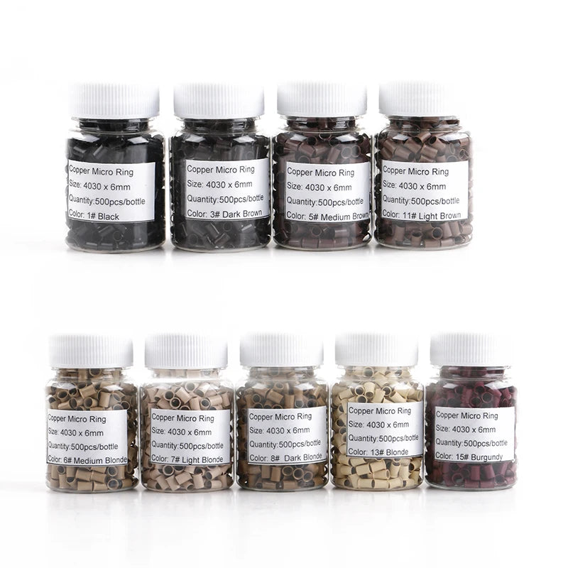 4 Bottles Micro Ring Hair Extension Tools 8 Colors Copper Tubes 4x3.6x6mm for I-Tip Extensions