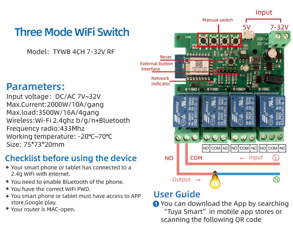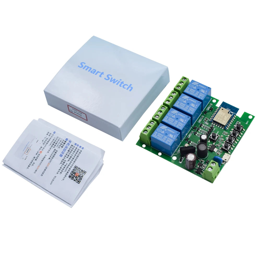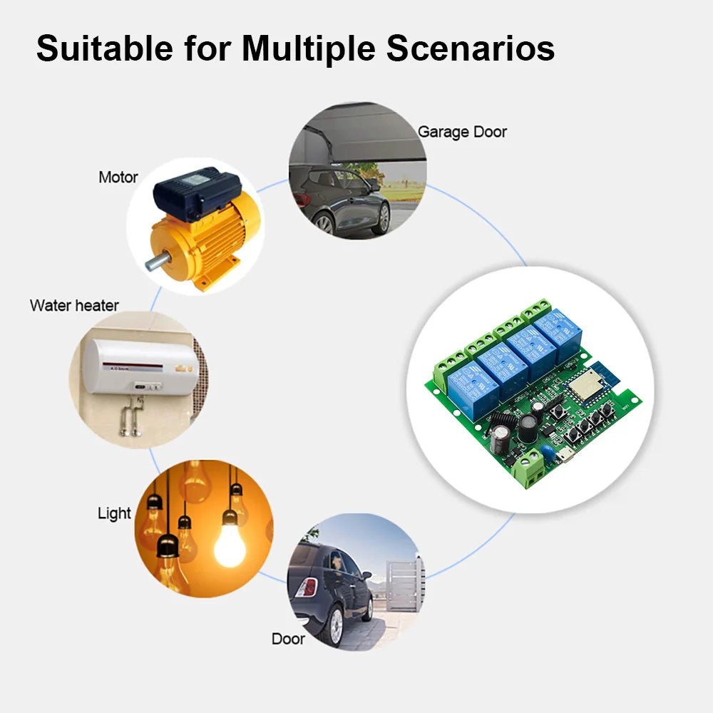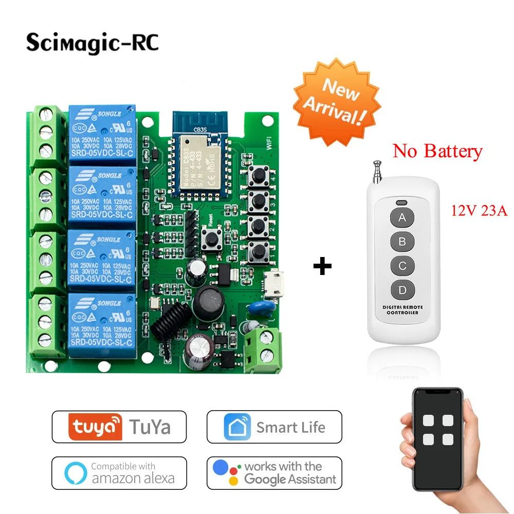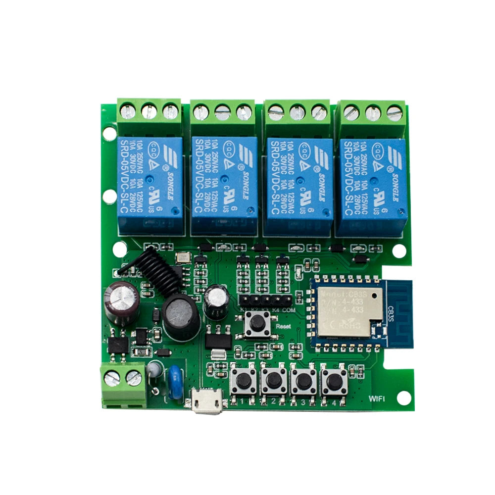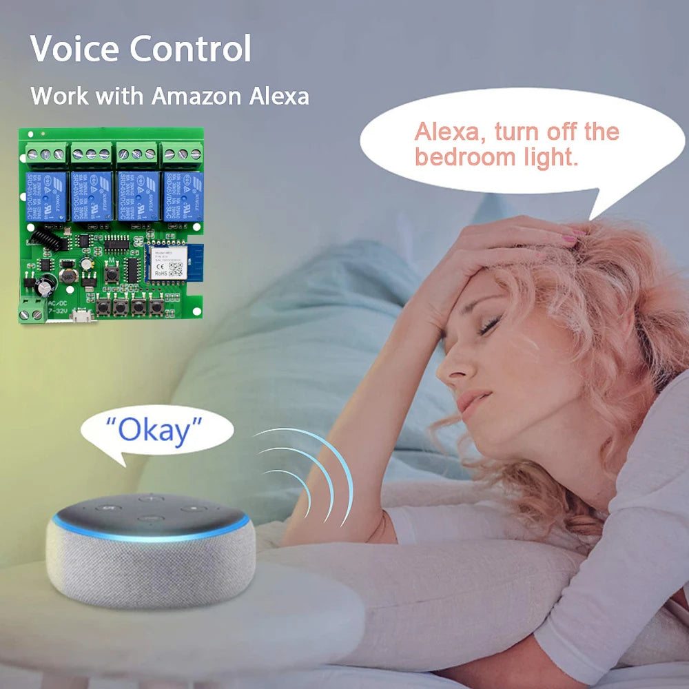 4CH Tuya WiFi Smart Relay Switch Module 7-32V/85-250V 2200W RF433 10A Alexa Compatible