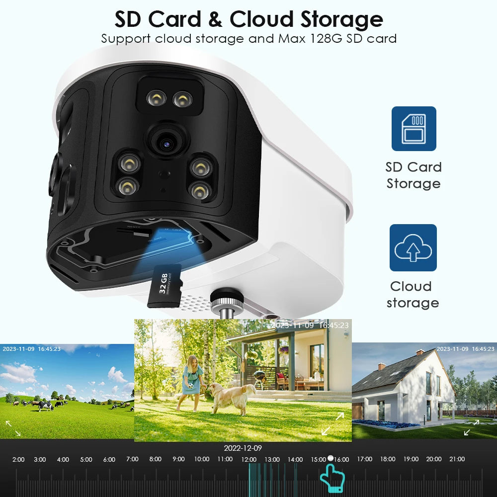 - Storage Options: Up to 128G Micro SD card storage, with optional cloud storage.