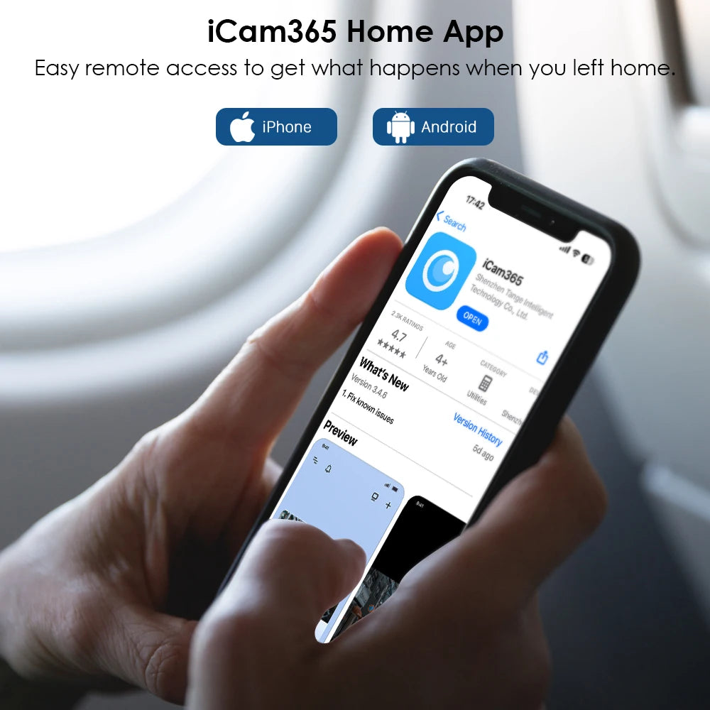 - User-Friendly App: Control and access via iCam365 app on iOS and Android devices.