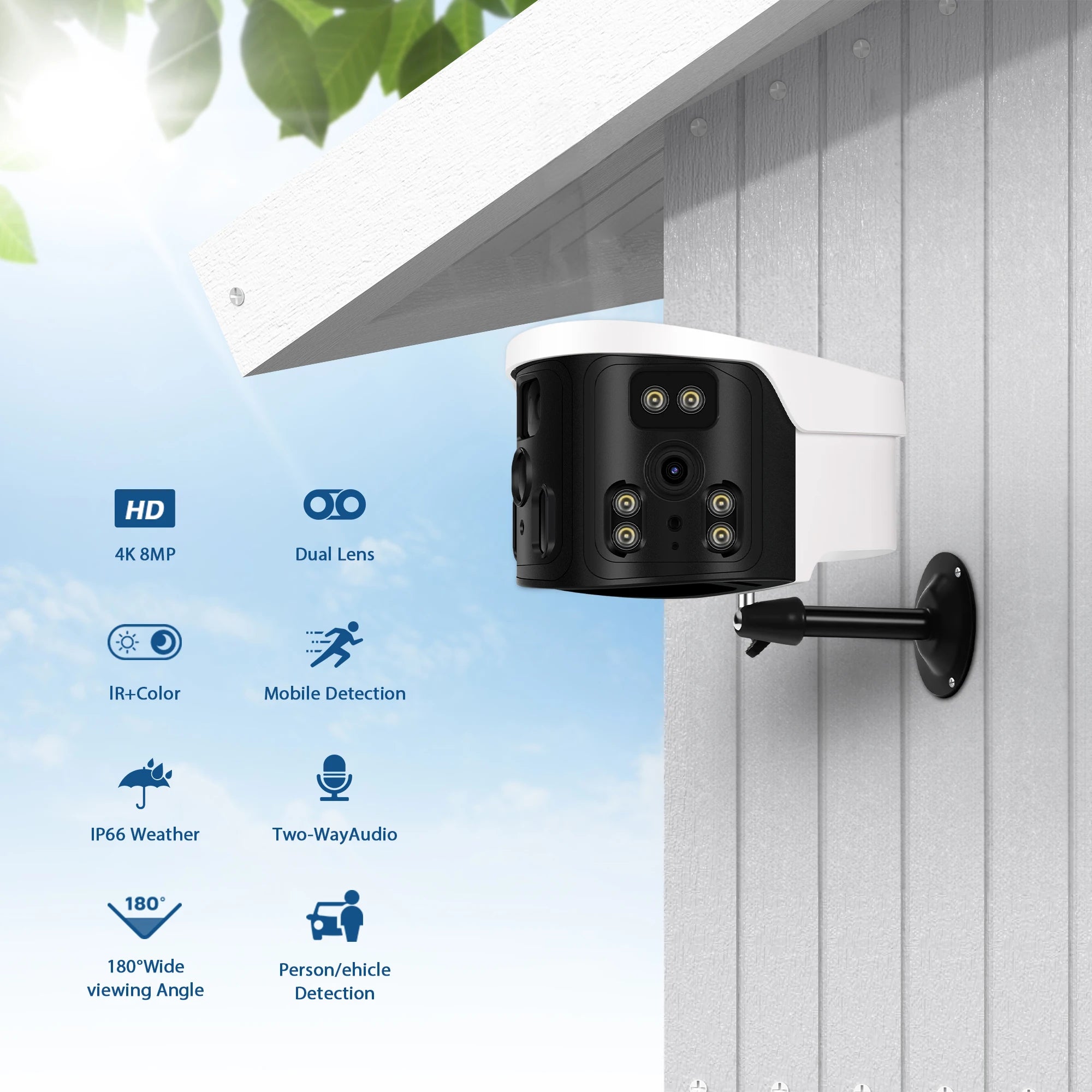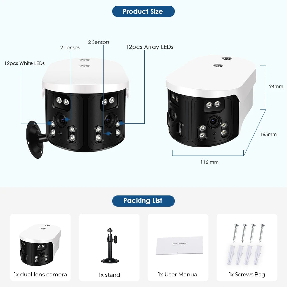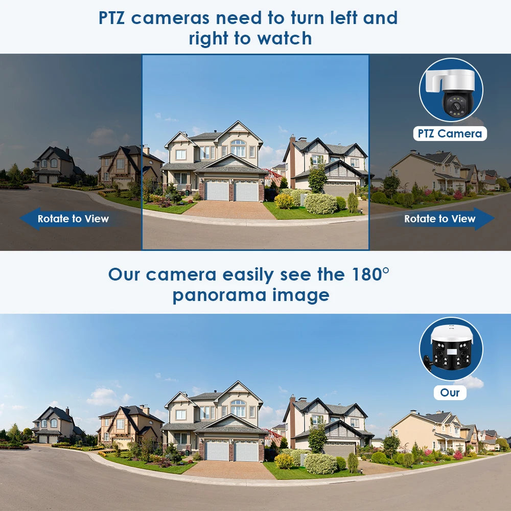 - 180° Wide-Angle View: Dual-lens design for comprehensive monitoring.