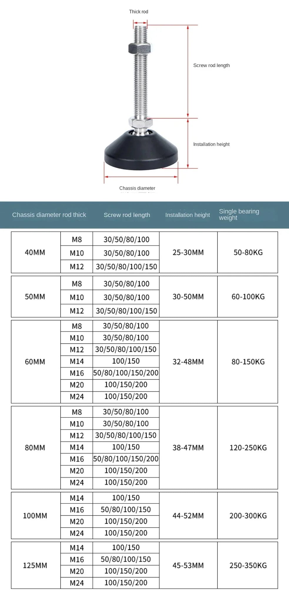 - Thread Diameter: M8/M10/M12