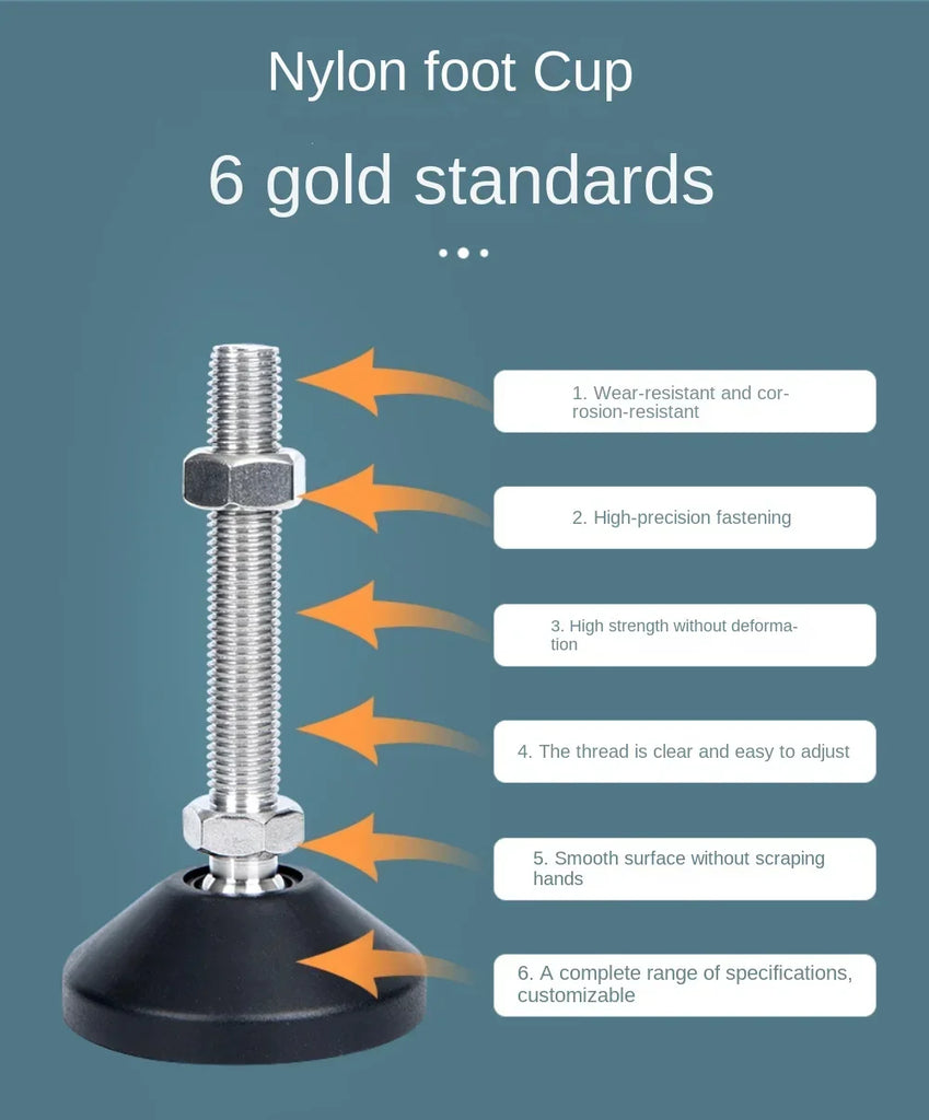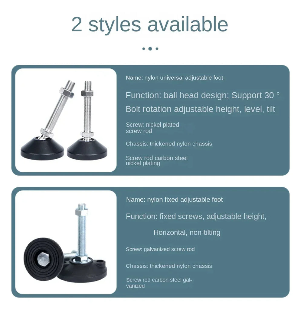 Elevate your furniture setup with our versatile 4Pcs Nylon Universal Adjusting Foot, designed to provide stability and support for a wide range of furniture and equipment. Crafted from durable carbon steel nylon, these adjustable legs ensure that your furniture remains secure while also protecting your floors with their anti-slip design.