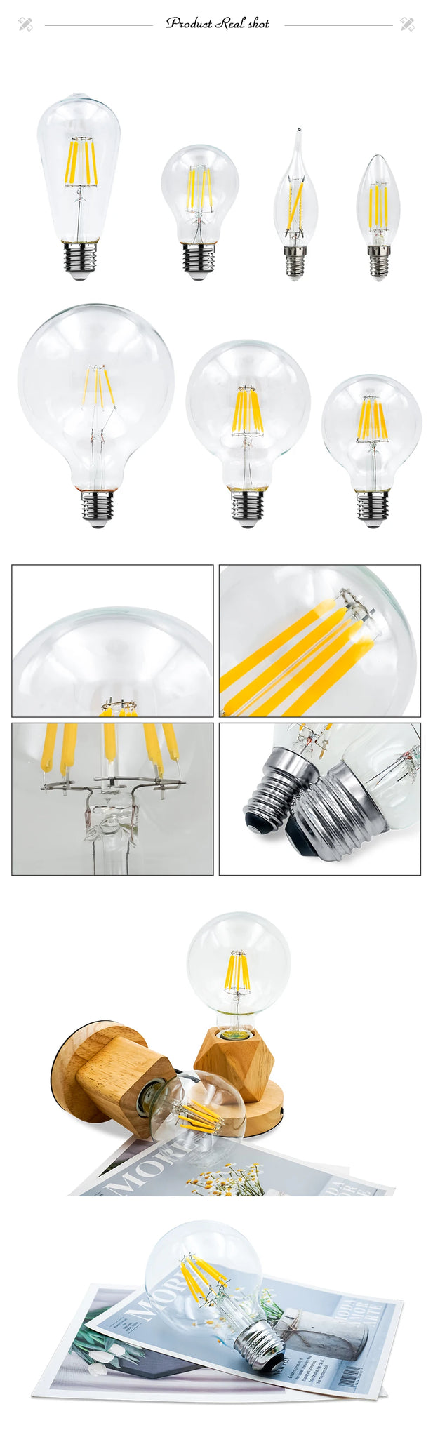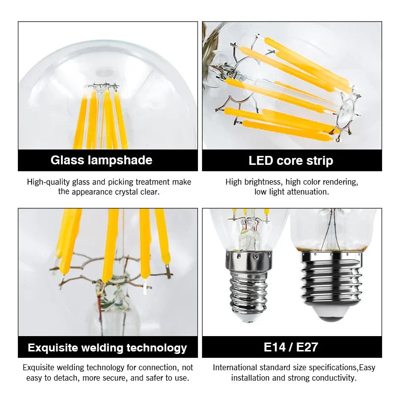 4pcs Dimmable Edison LED Bulbs E27 E14 C35 A60 ST64 G80 G95 2W-8W 220V Warm Daylight 2700K 6000K 360° Energy-Saving Filament Lamps