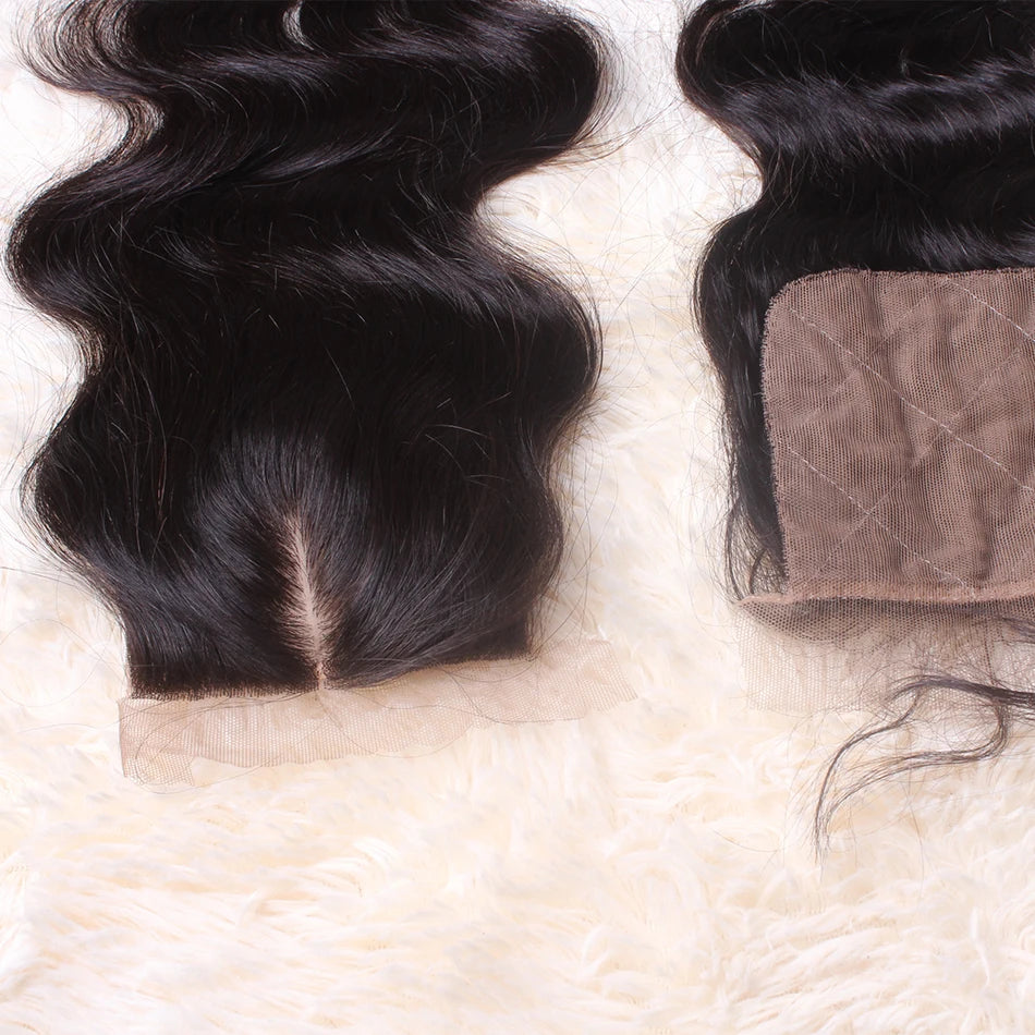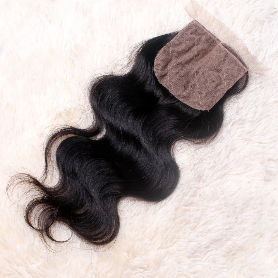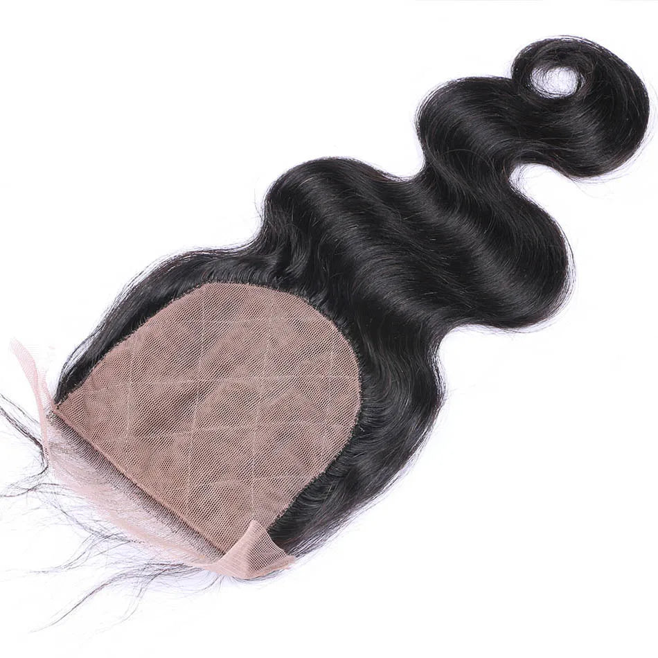 4x4 Silk Base Lace Closure 100% Human Hair Straight/Body Wave Pre-Plucked Natural Color