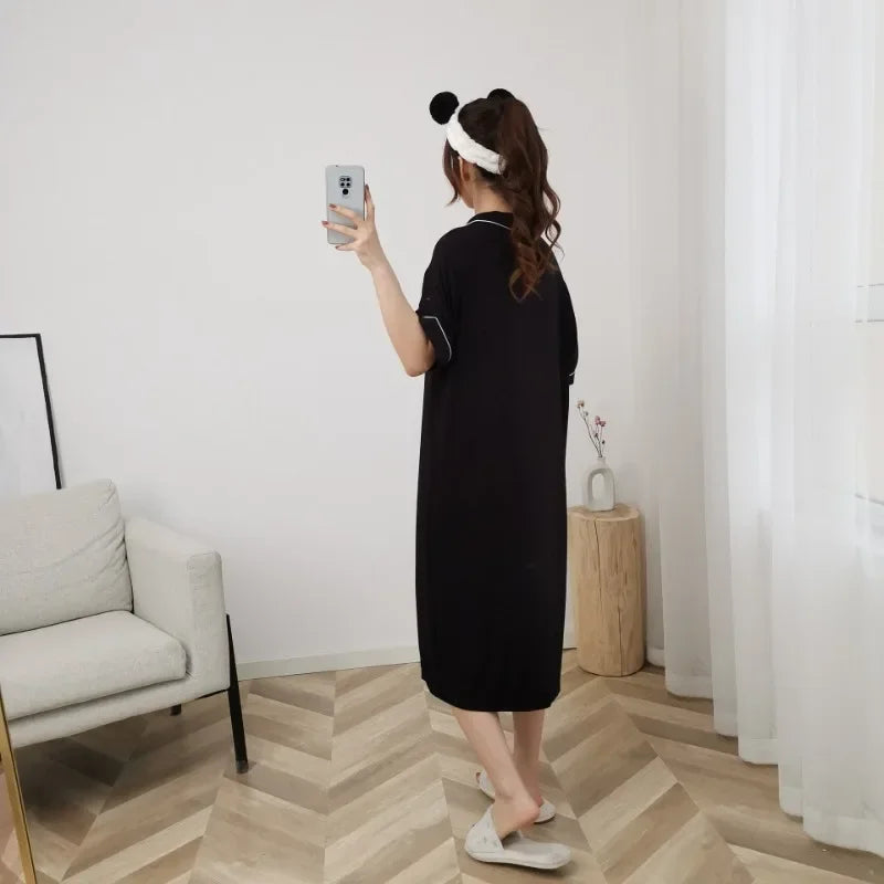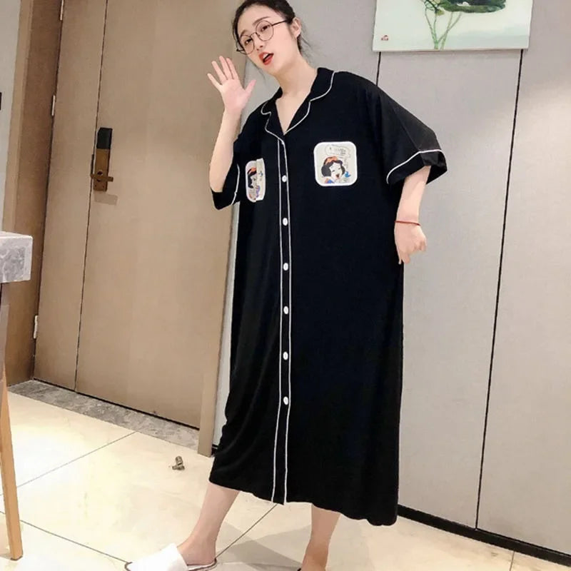 4XL Plus Size Women's Loose Nightgown Lapel Cardigan Long Shirt Dress Casual Homewear Sexy Thin Sleepwear 150kg