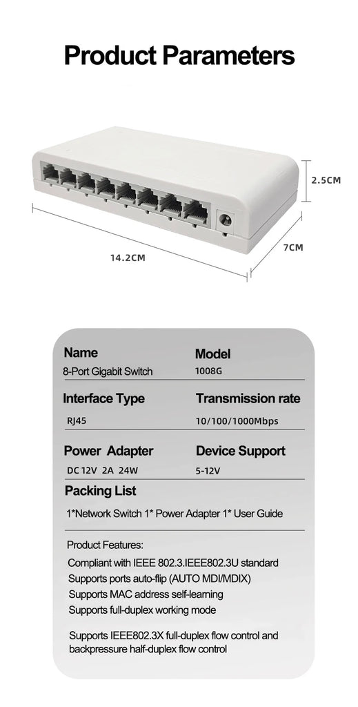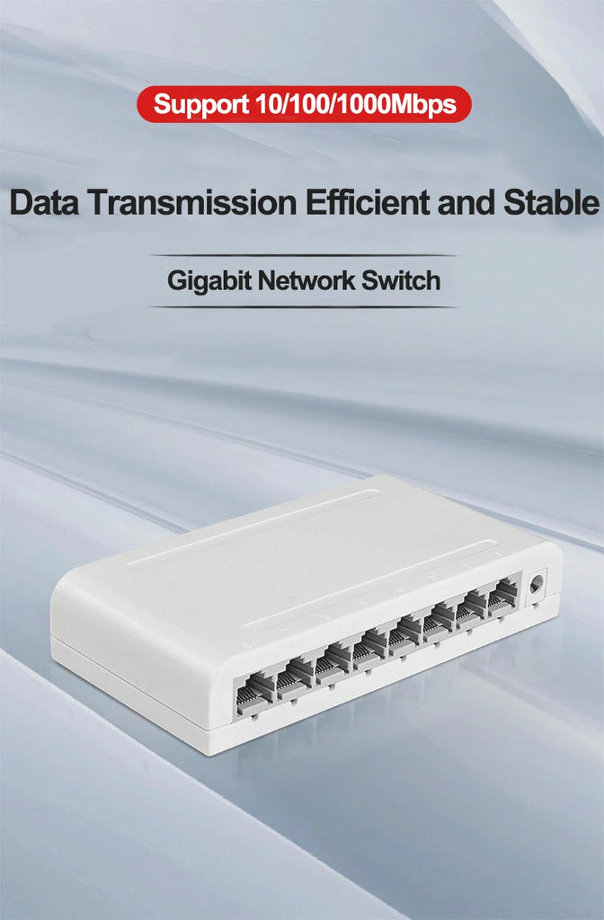 Elevate your network performance with the 5/8 Port Gigabit Data Switch, designed to offer high-speed data transmission of 10/100/1000Mbps. Ideal for settings like schools, small to medium businesses, and home networks, this Ethernet switch ensures fast and reliable connectivity for any demanding application.