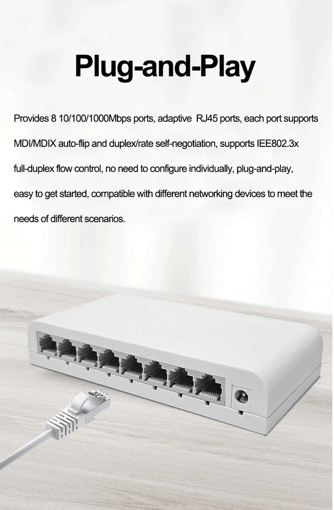 - Package Includes: 1 Network Switch, 1 Power Supply (EU Plug)