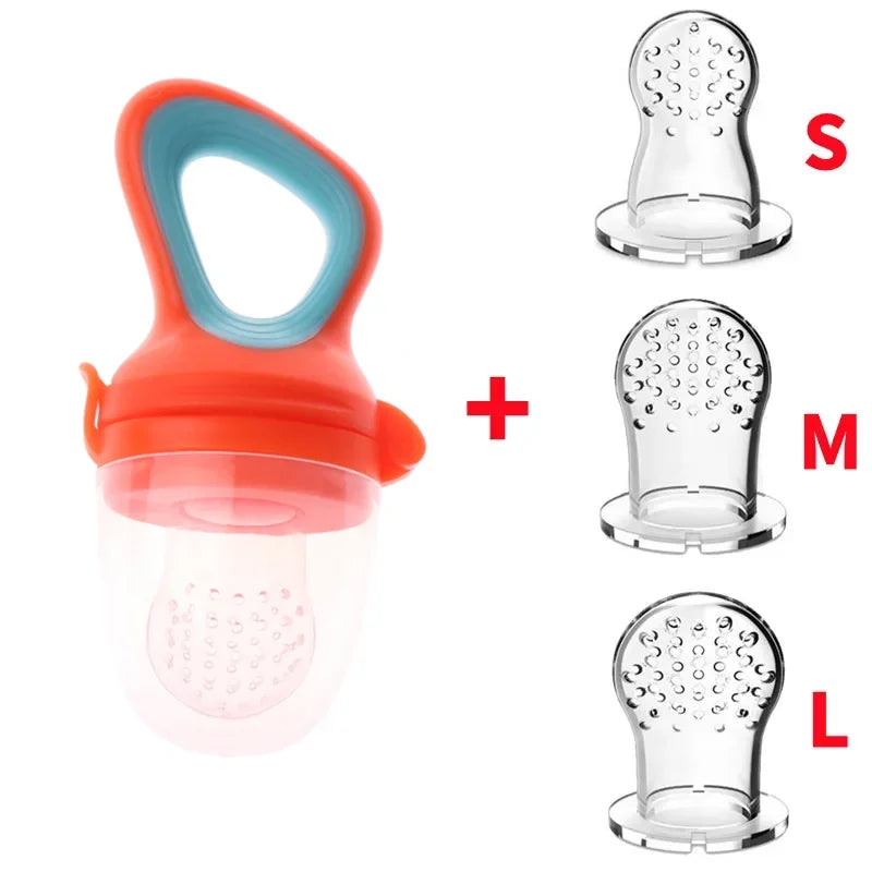 5-in-1 Baby Fruit Feeder & Teething Pacifier Set - Silicone Mesh Bag for Fruits & Vegetables, Nursing Toddler Nipple Teether Toy