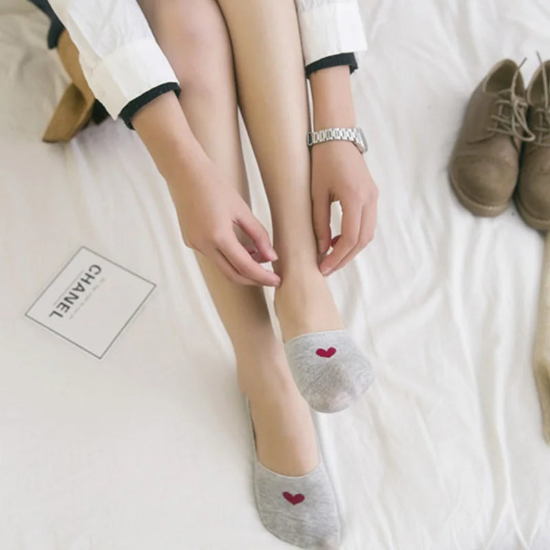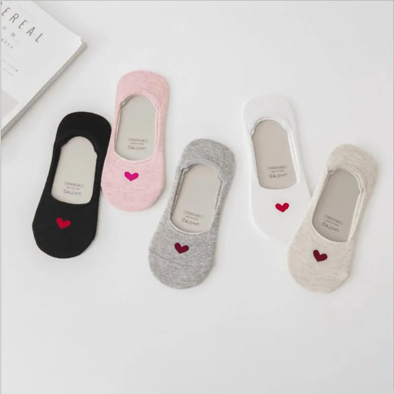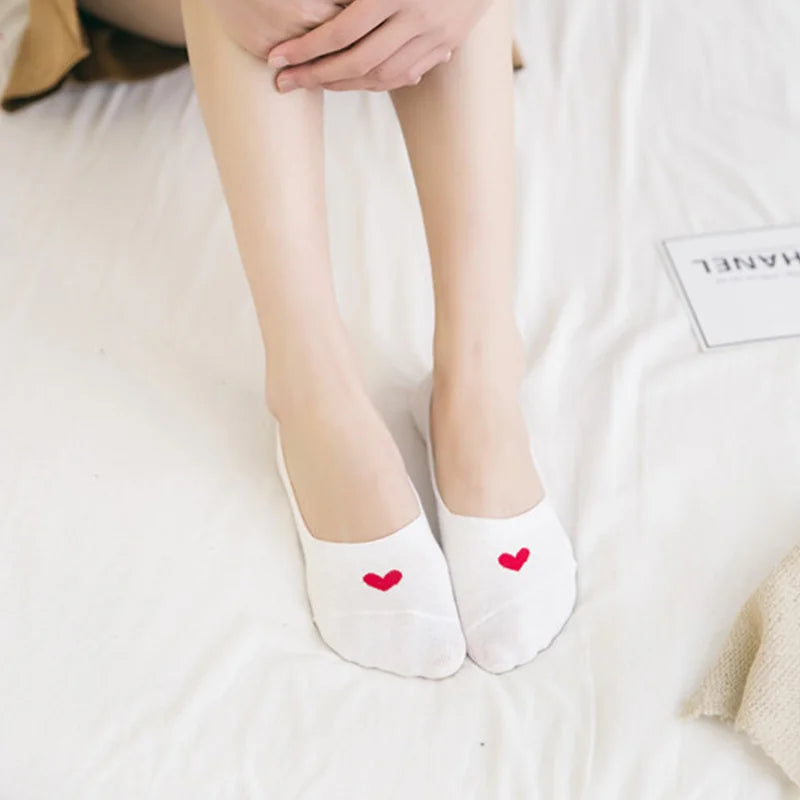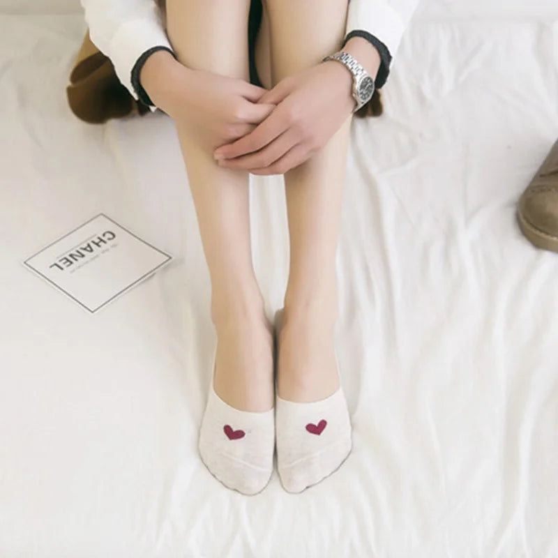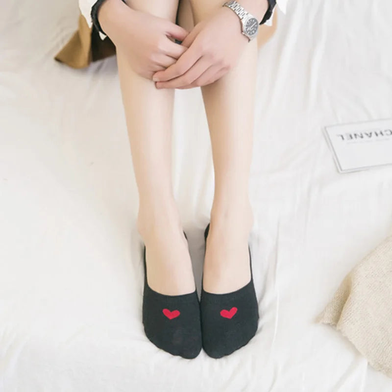 5 Pairs Women's Heart Non-Slip Low-Cut Socks with Gel Grip