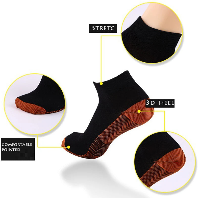 5 Pairs Copper Compression Socks Unisex for Sports, Plantar Fasciitis, Heel Spurs & Arch Pain Relief