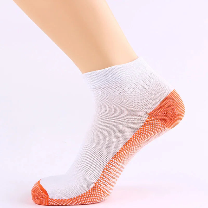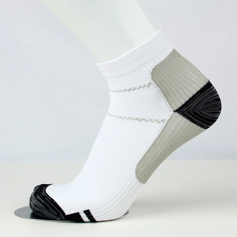 Crafted with a blend of cotton, polyester, spandex, and copper fiber, these socks deliver optimal support and functionality to help manage plantar fasciitis and heel spurs. Available in a classic black and white color, they're ideal for all seasons—spring, summer, autumn, and winter. Each package includes 5 pairs, conveniently packed in an OPP bag.