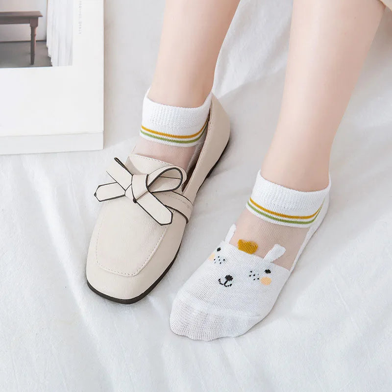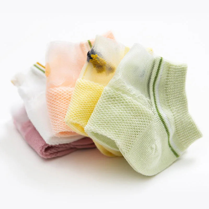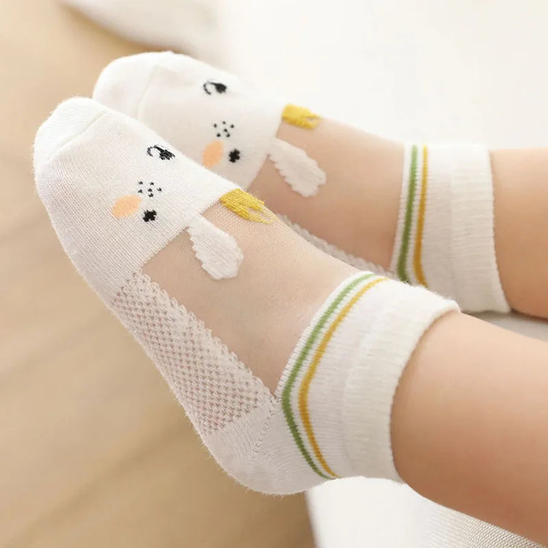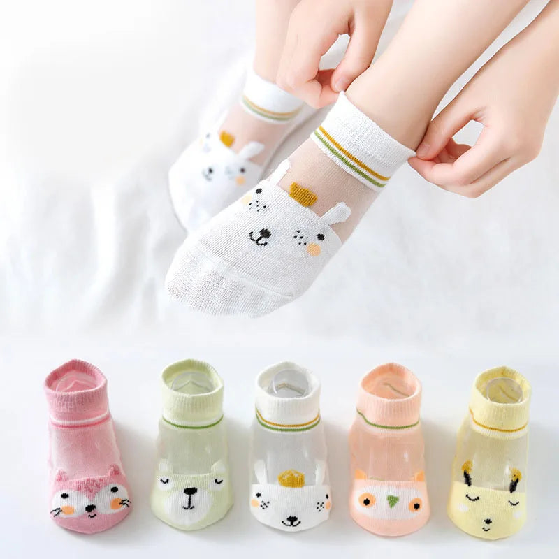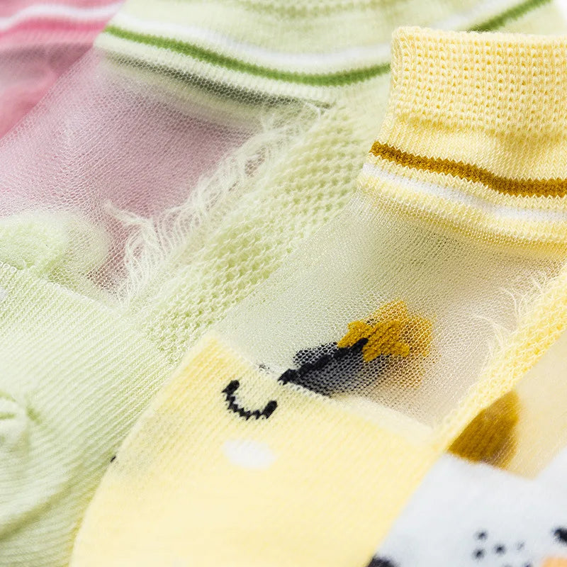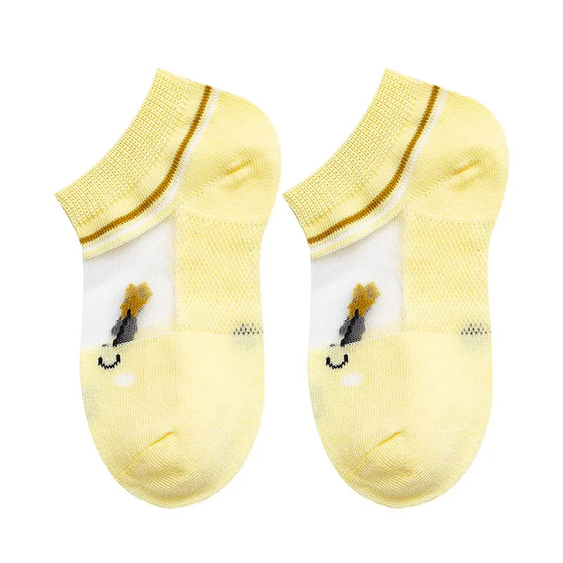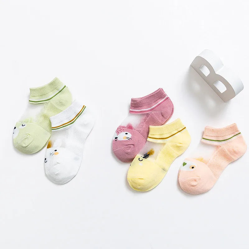5 Pairs Kids Cartoon Animal Mesh Breathable Summer Socks