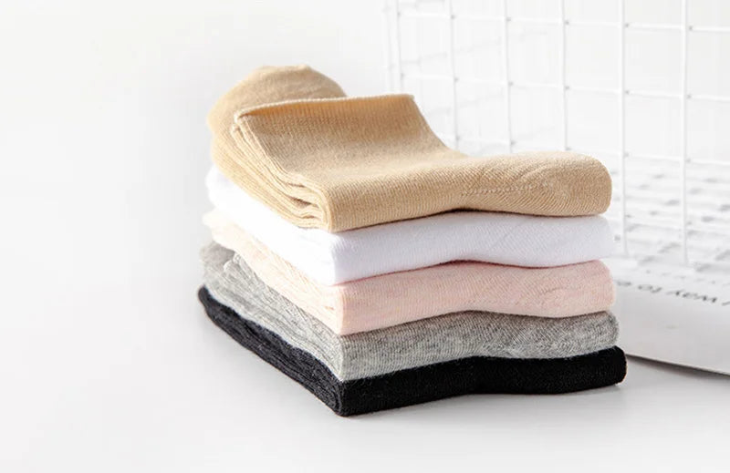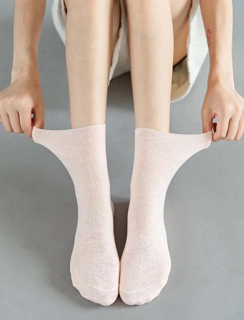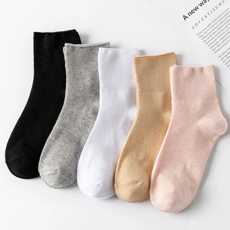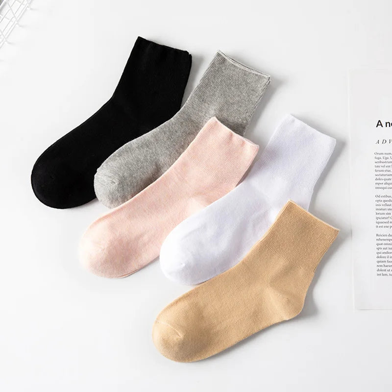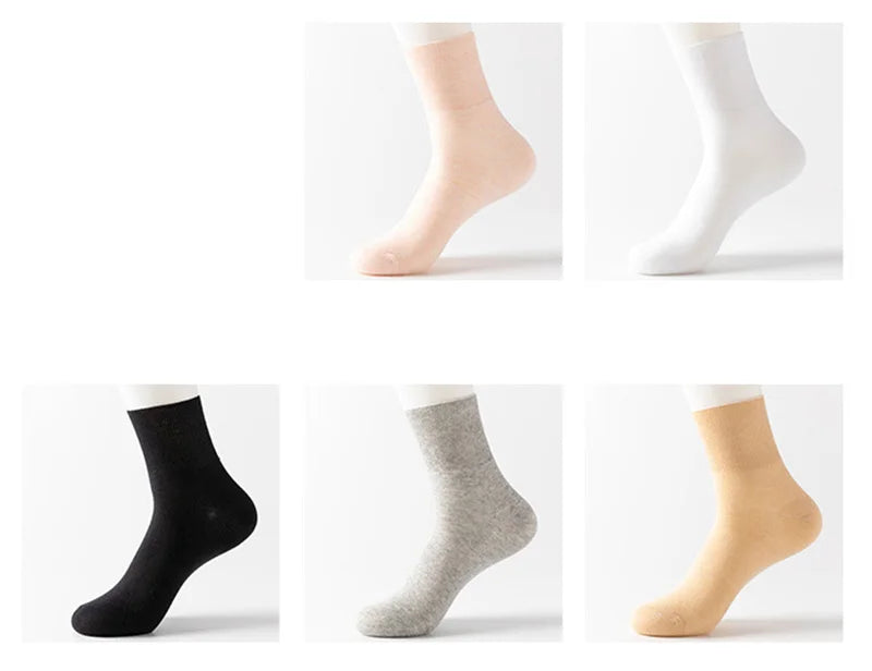 Made from a high-quality blend of cotton, polyester, and spandex, these socks ensure a comfortable fit and feature a loose mouth design to accommodate swelling. Suitable for all seasons, these middle tube socks come in a variety of colors including black, white, grey, dark grey, navy, pink, and skin. Each package contains five pairs, making them a perfect addition to your footwear collection.