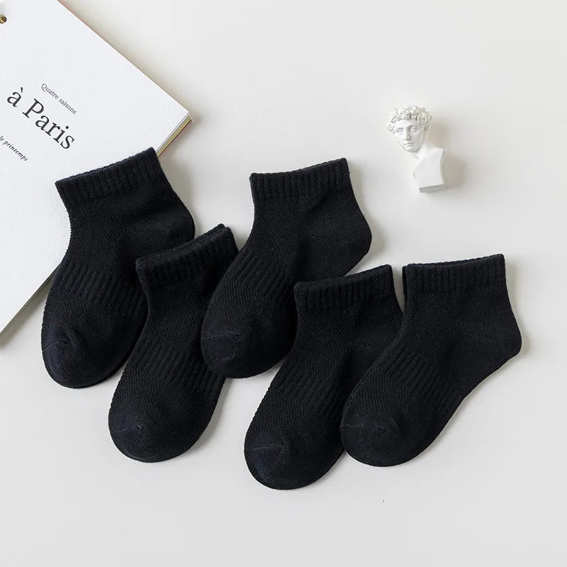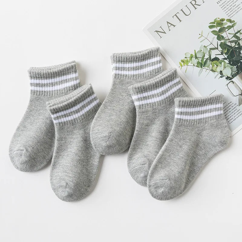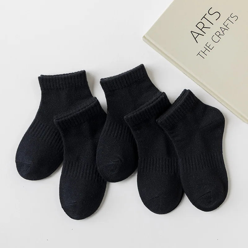 5 Pairs Lot Summer Cotton Kids Socks 1-12 Years Black White Gray Fashion Teen Baby Girl Boy Student