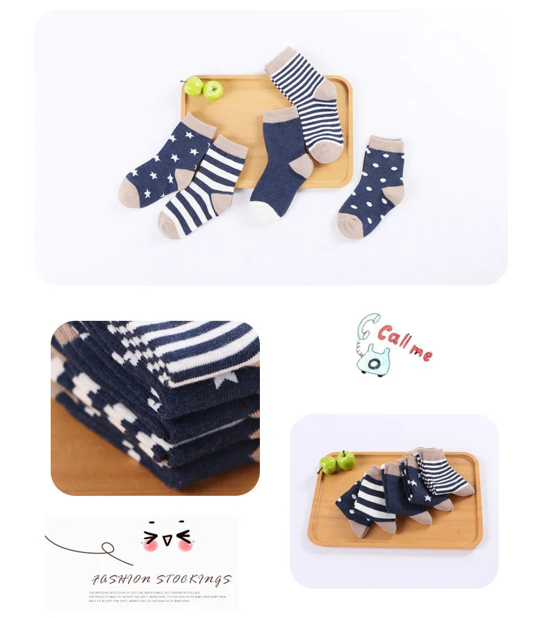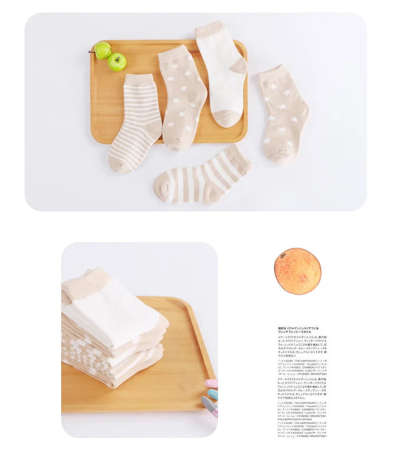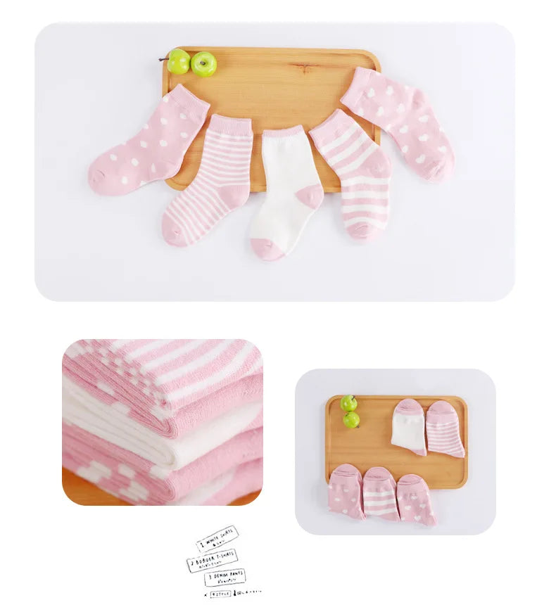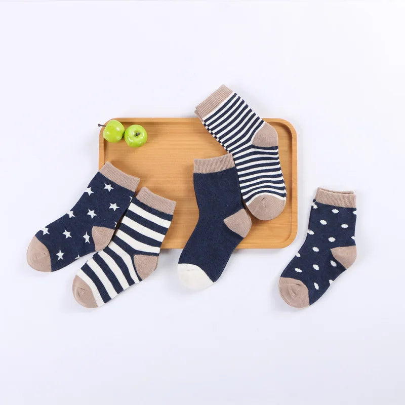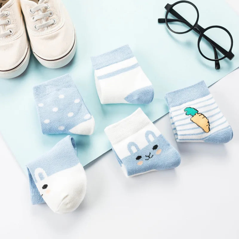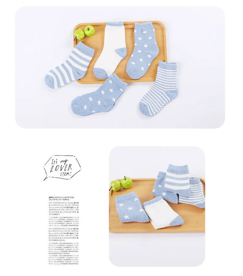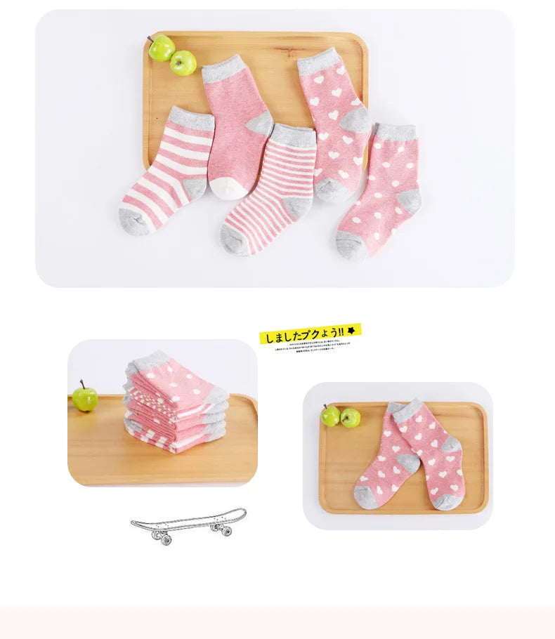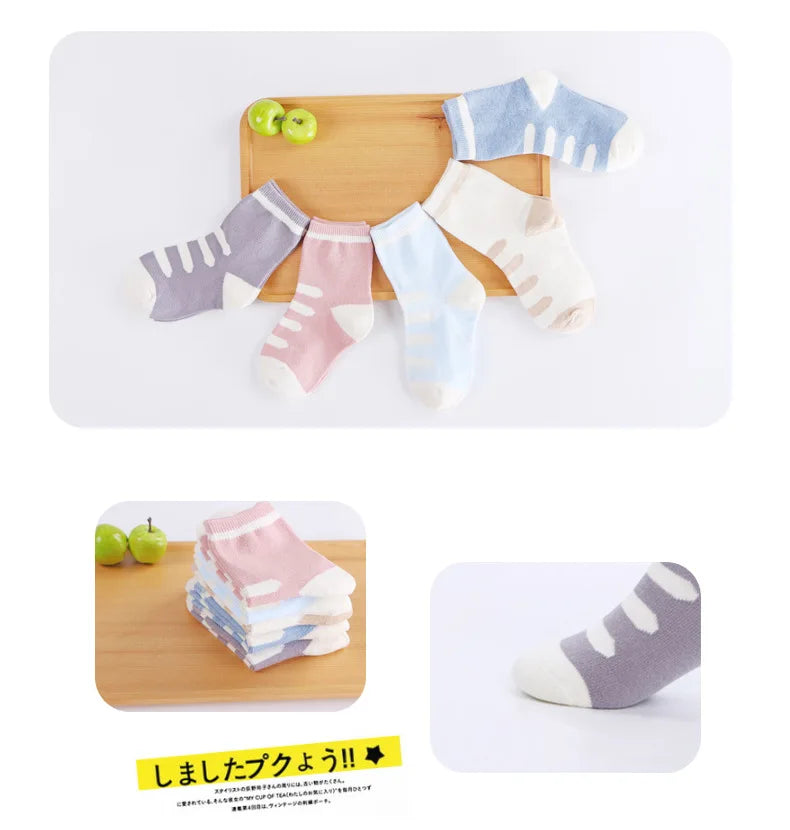 5 Pairs Cotton Baby Socks Striped Stretchy Soft Cartoon for Boys Girls 0-8 Years