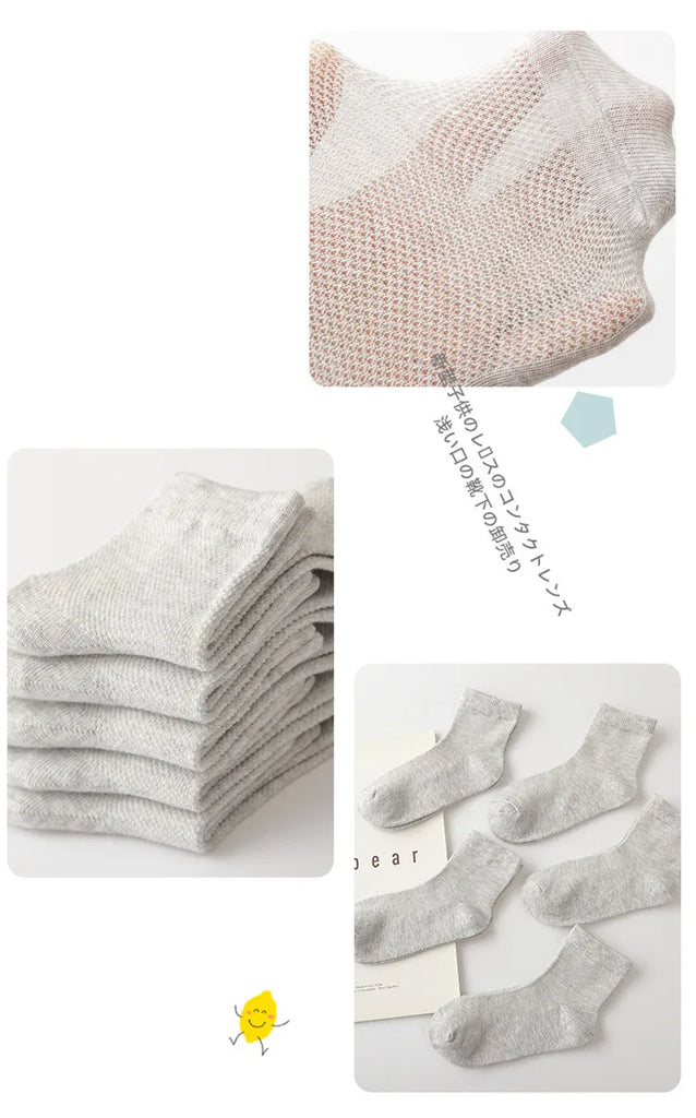 5 Pairs Kids Cotton Mesh Socks Summer Breathable Soft Casual for Boys & Girls Ages 1-12