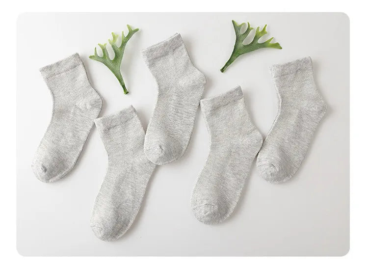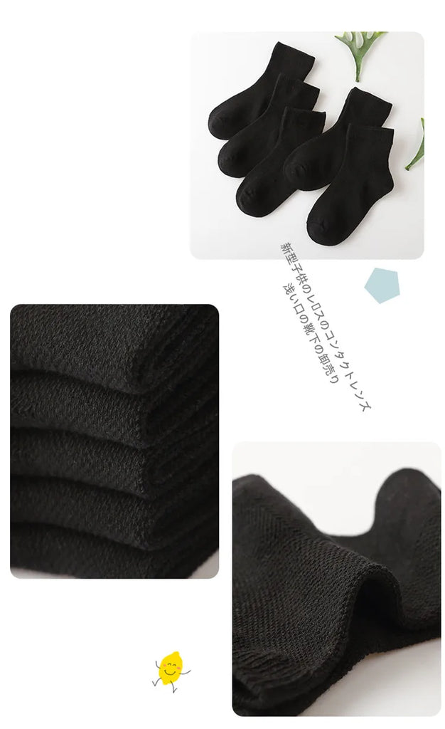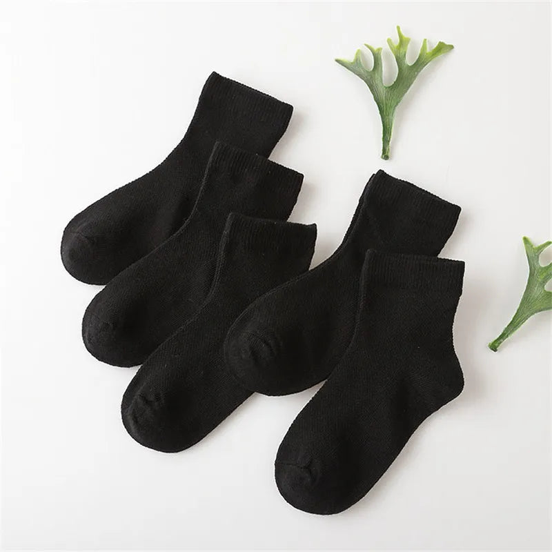 Introducing our adorable children's socks, perfect for daily wear and available in a variety of sizes to comfortably fit little feet. Crafted from a high-quality cotton blend, these socks offer exceptional softness, breathability, and elasticity, making them ideal for active kids. Designed to fit true to size, they're suitable for both boys and girls, spanning ages 1 to 12 years. The solid pattern style is both fashionable and cute, perfect for spring, summer, and autumn seasons. Each pack includes five pairs, ensuring great value and convenience.