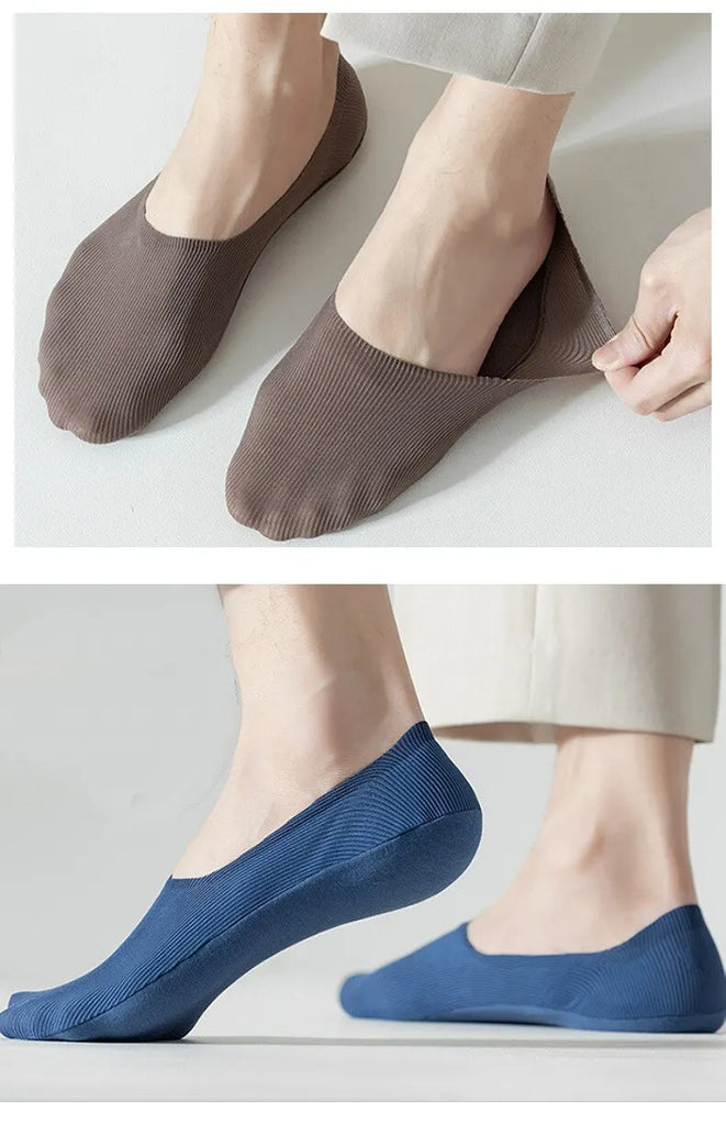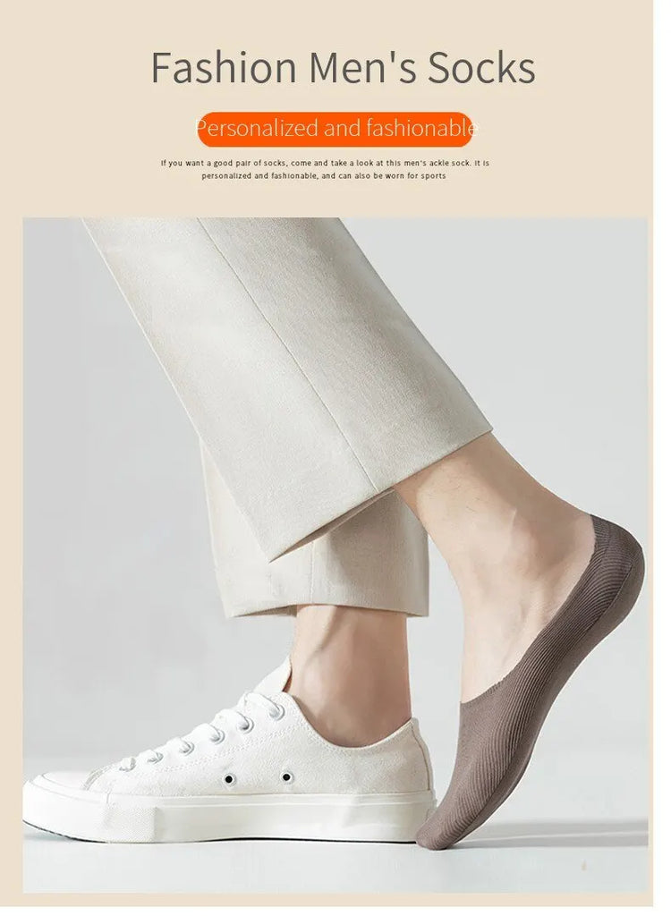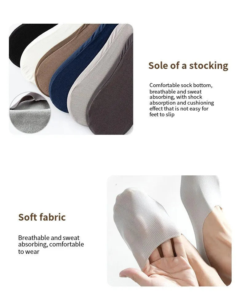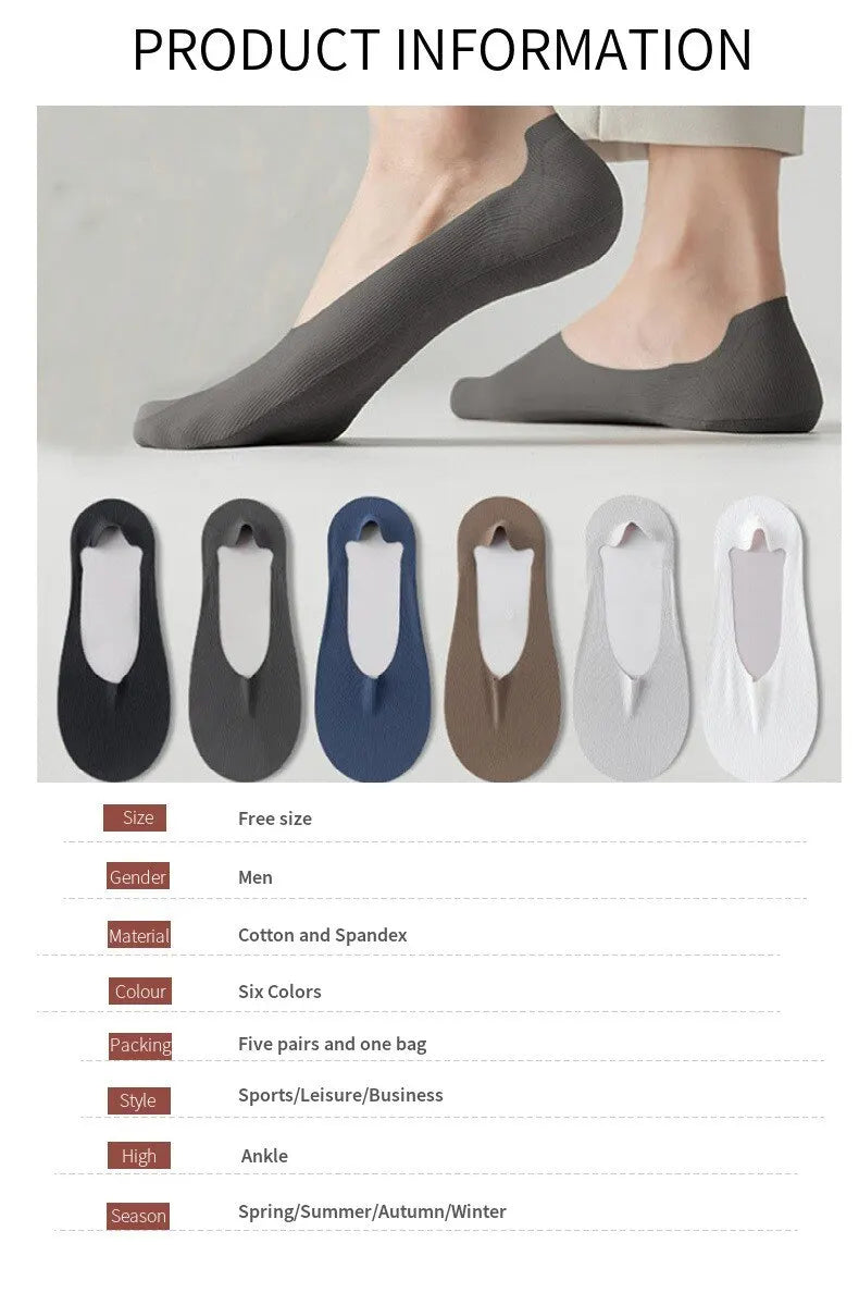 5 Pairs Men's Cotton Boat Socks, Deodorizing, Sweat-Absorbing, Breathable, Thin, Non-Slip Silicone, Summer Ankle Socks