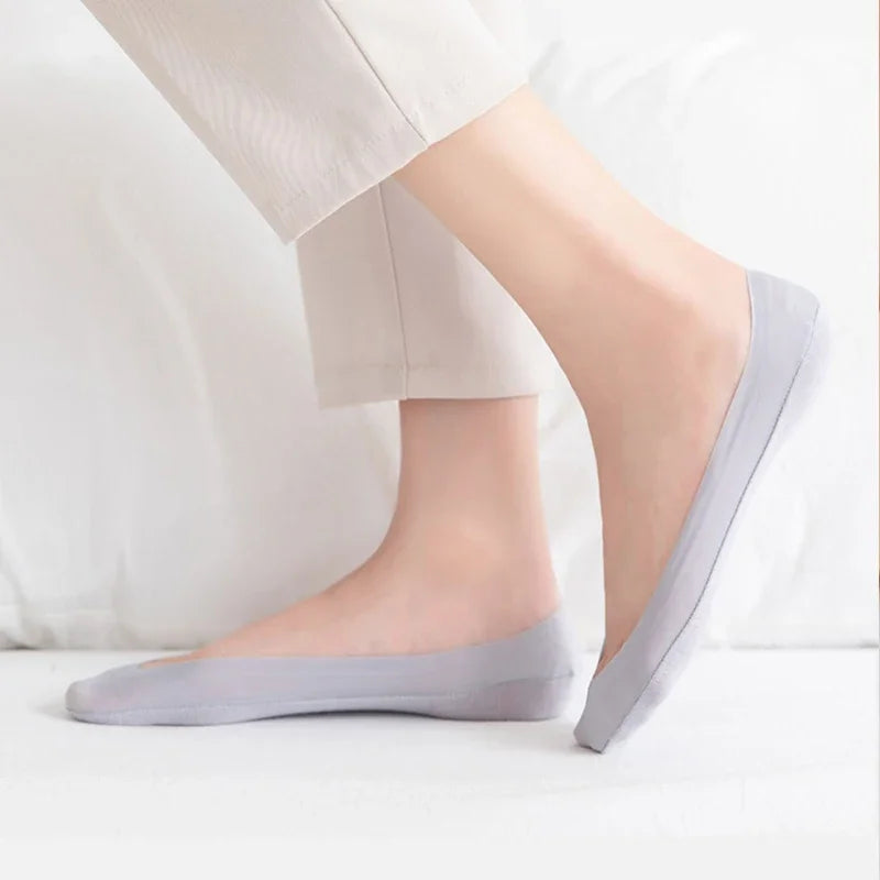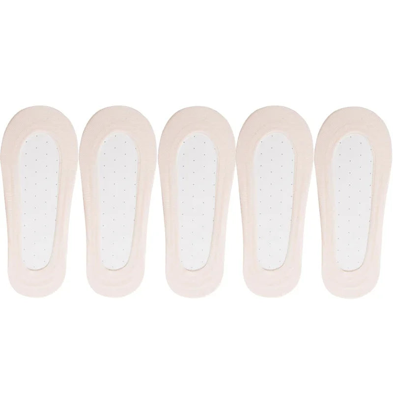 5 Pairs Women's Invisible Ankle Socks Non-Slip Cotton Low Cut No-Show Boat Socks - White Summer Set