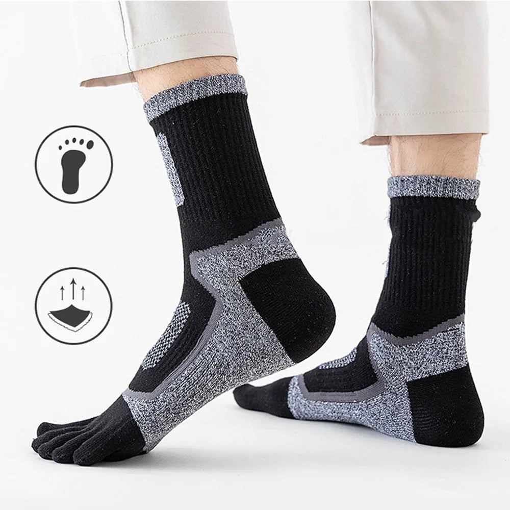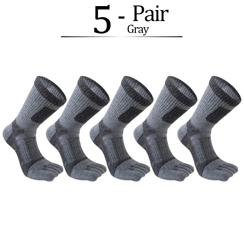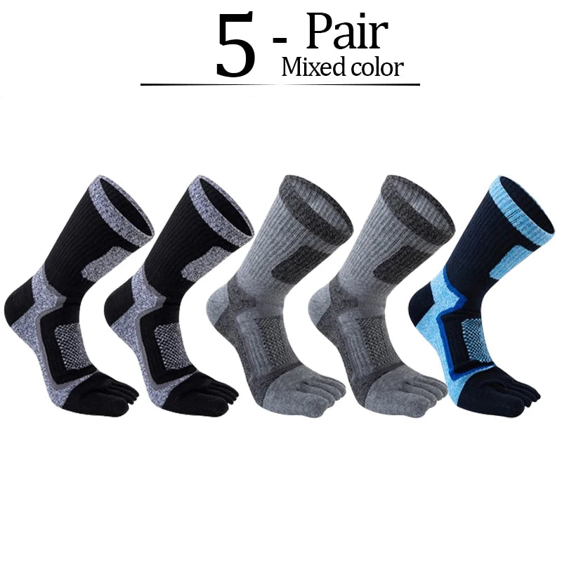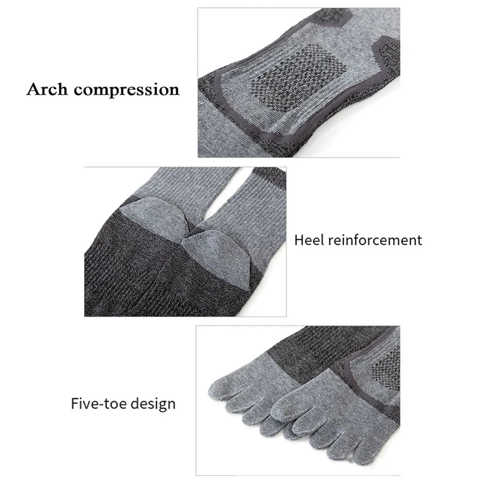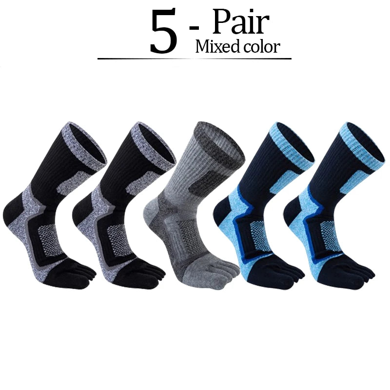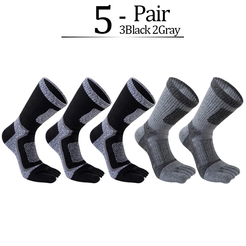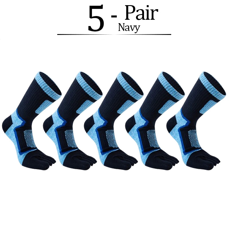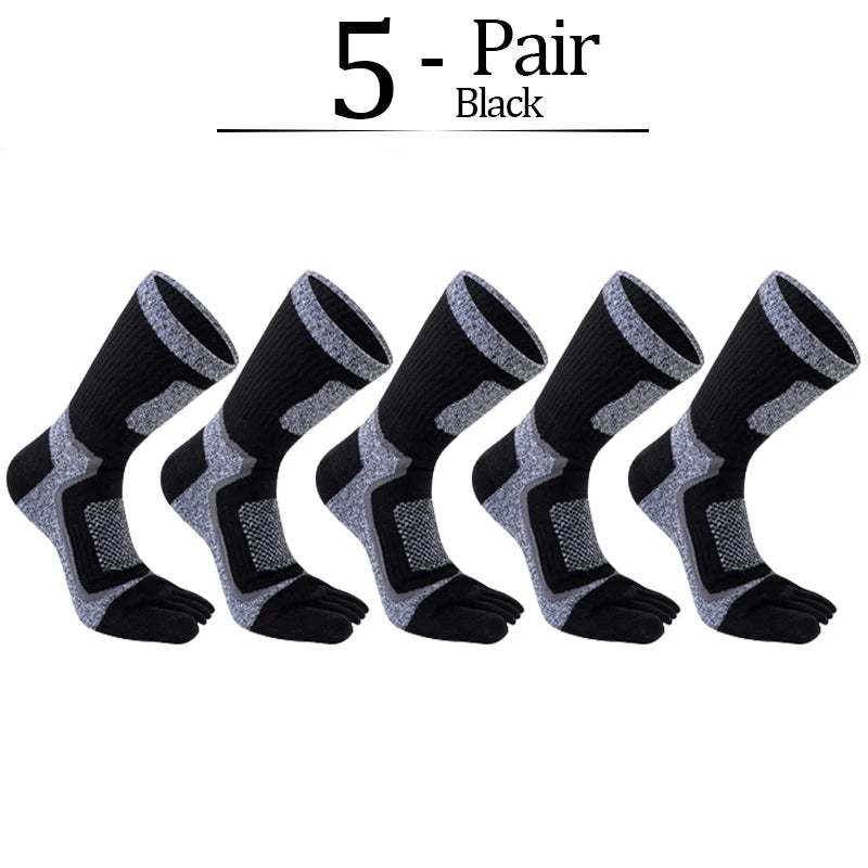 5 Pack Men's Toe Compression Sport Socks for Fitness, Running, Cycling & Basketball - Mesh, Durable, Outdoor 5-Finger Socks
