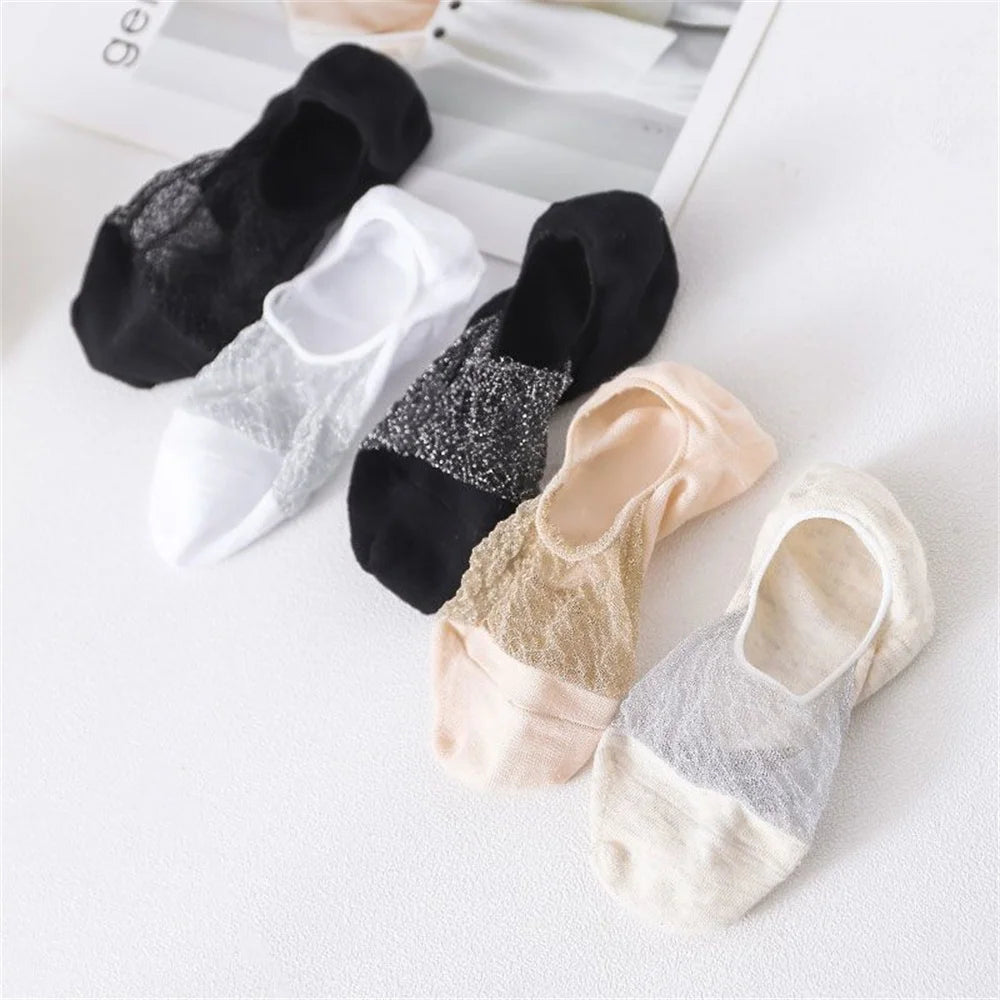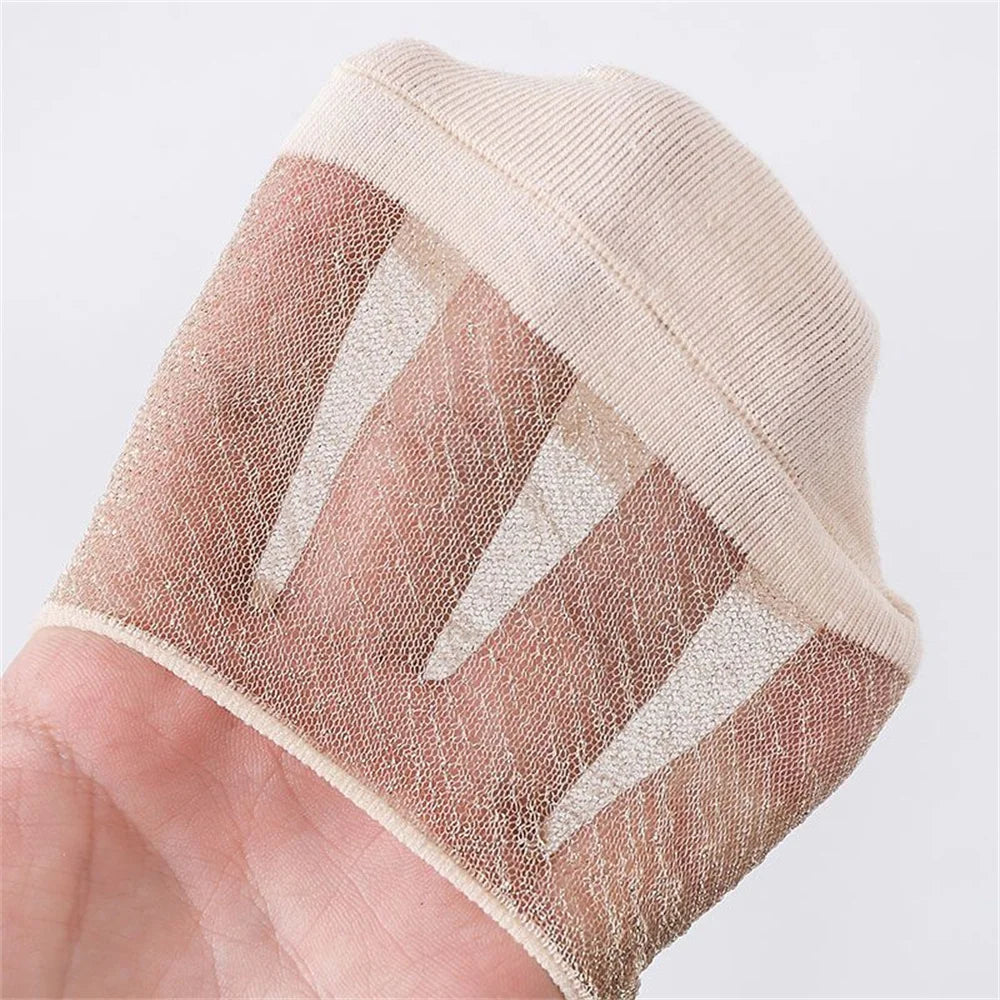 5 Pairs Ultra Thin Transparent Silk Socks, Anti-Slip Cotton Sole, Invisible Low Cut for Spring/Summer