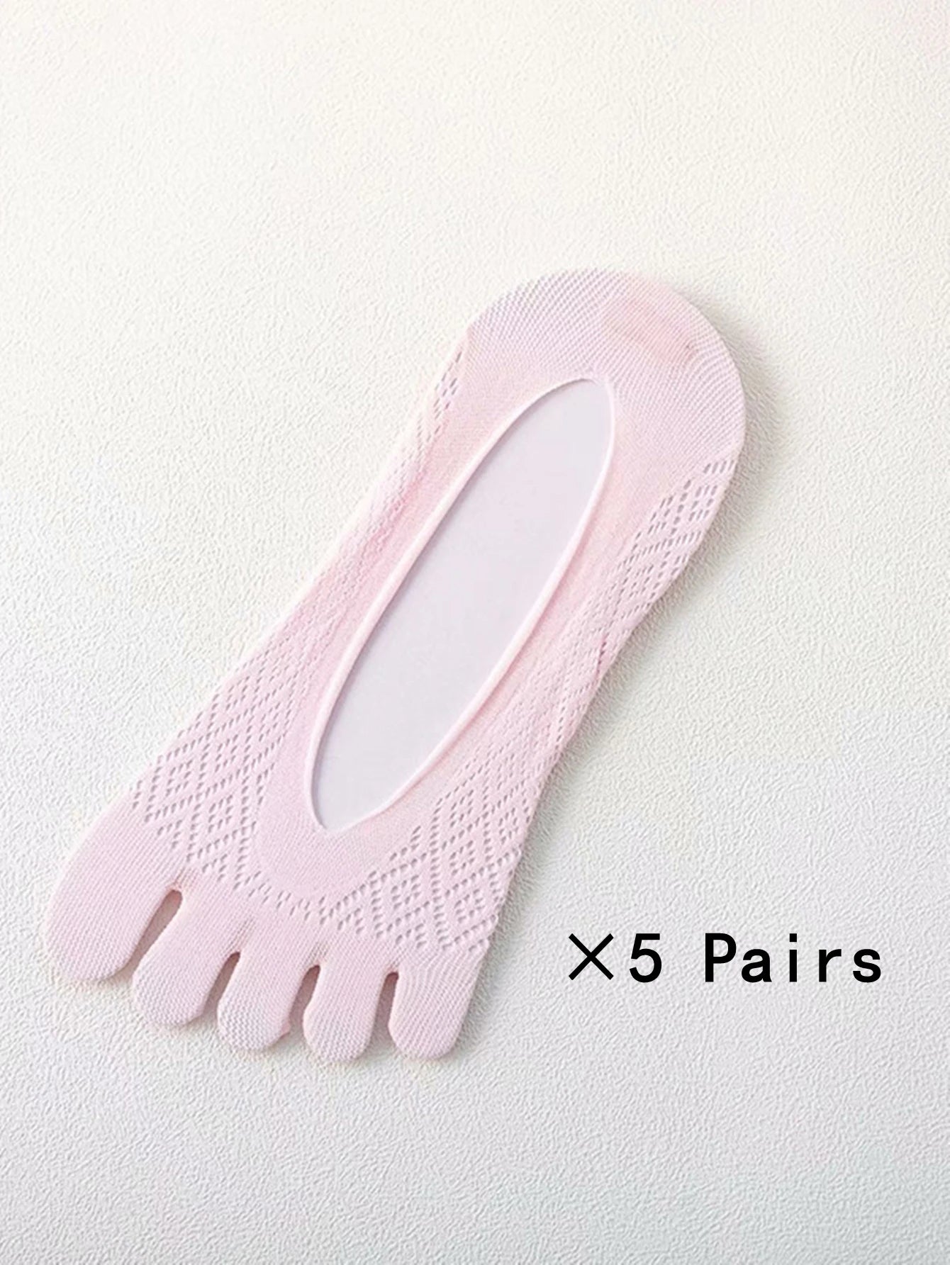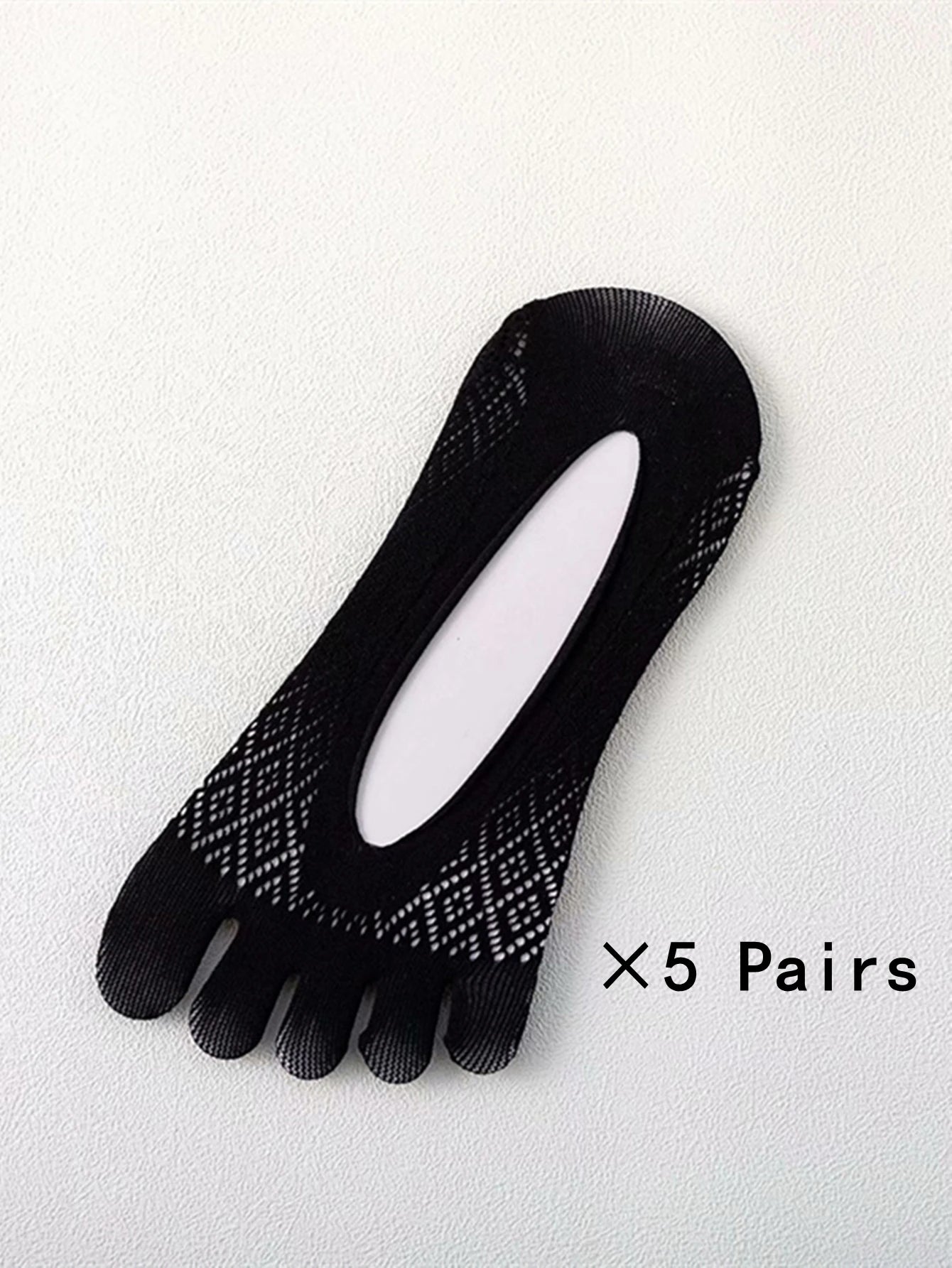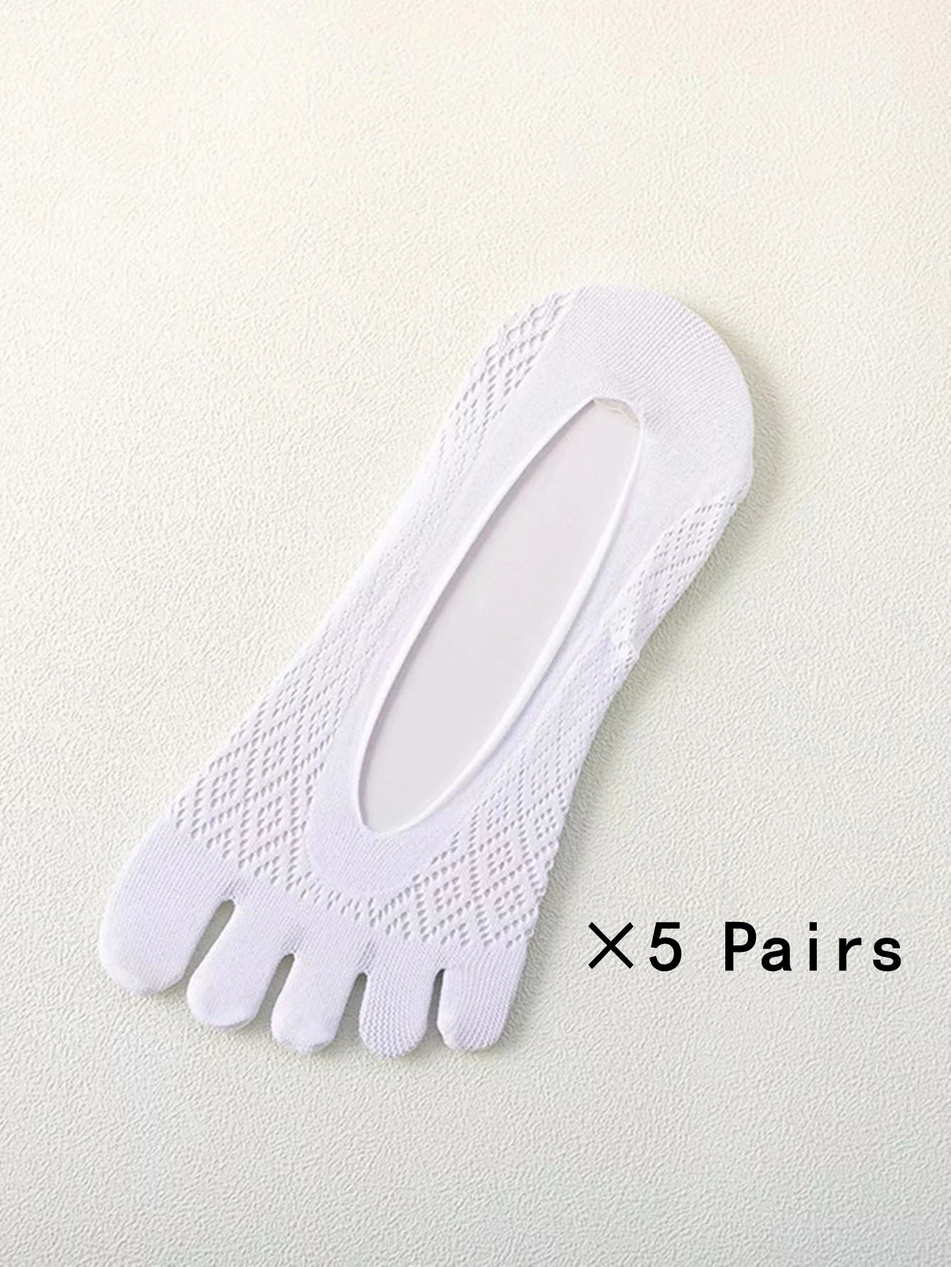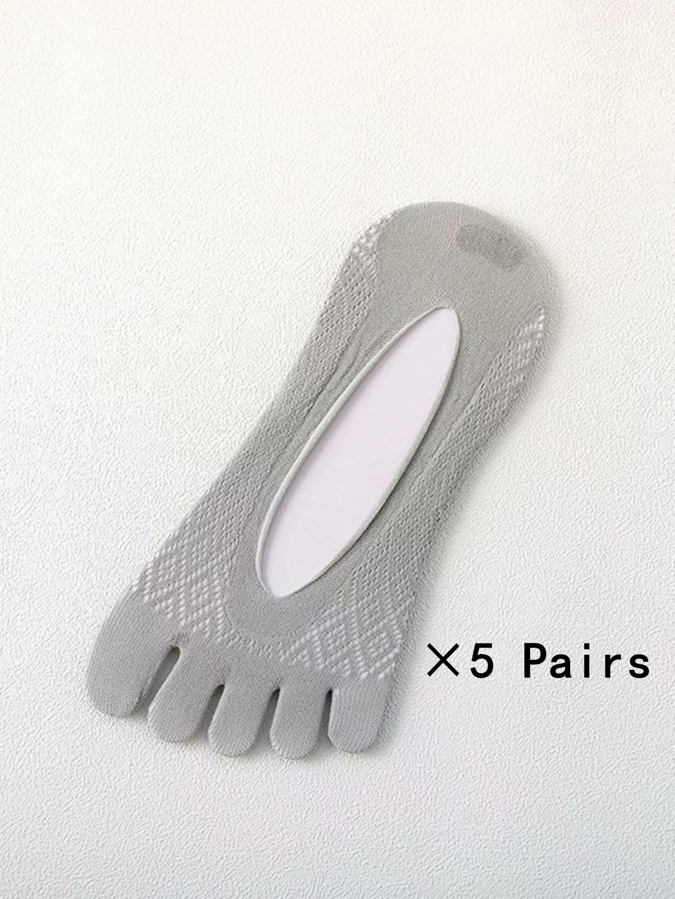 5 Pairs Summer Cotton Five Finger No Show Socks Ice Silk Sweat-Absorbent Thin Shallow Mouth Invisible Boat Socks