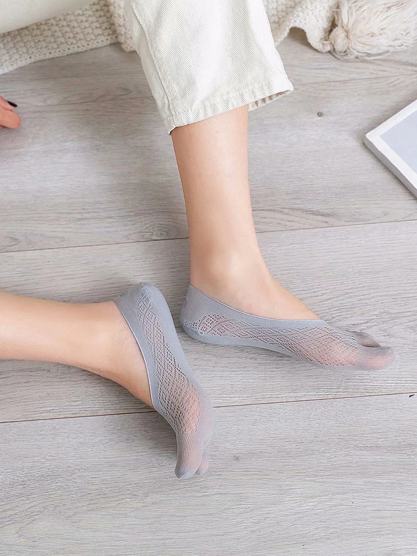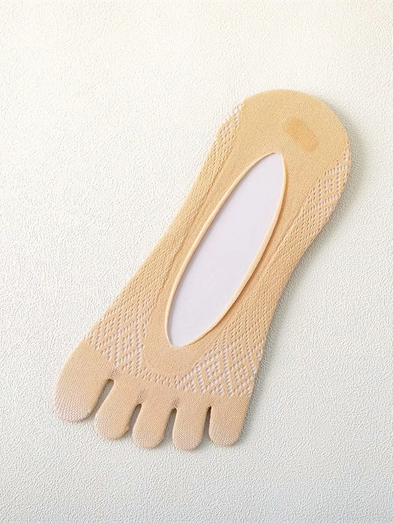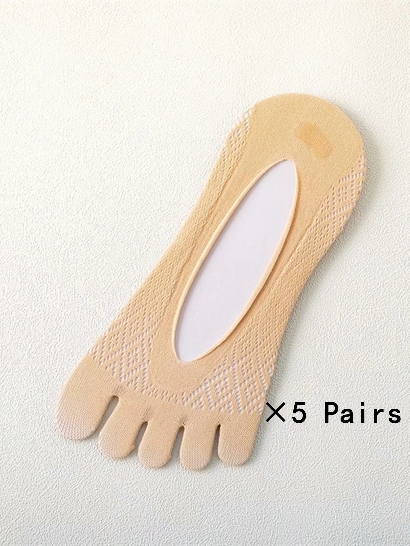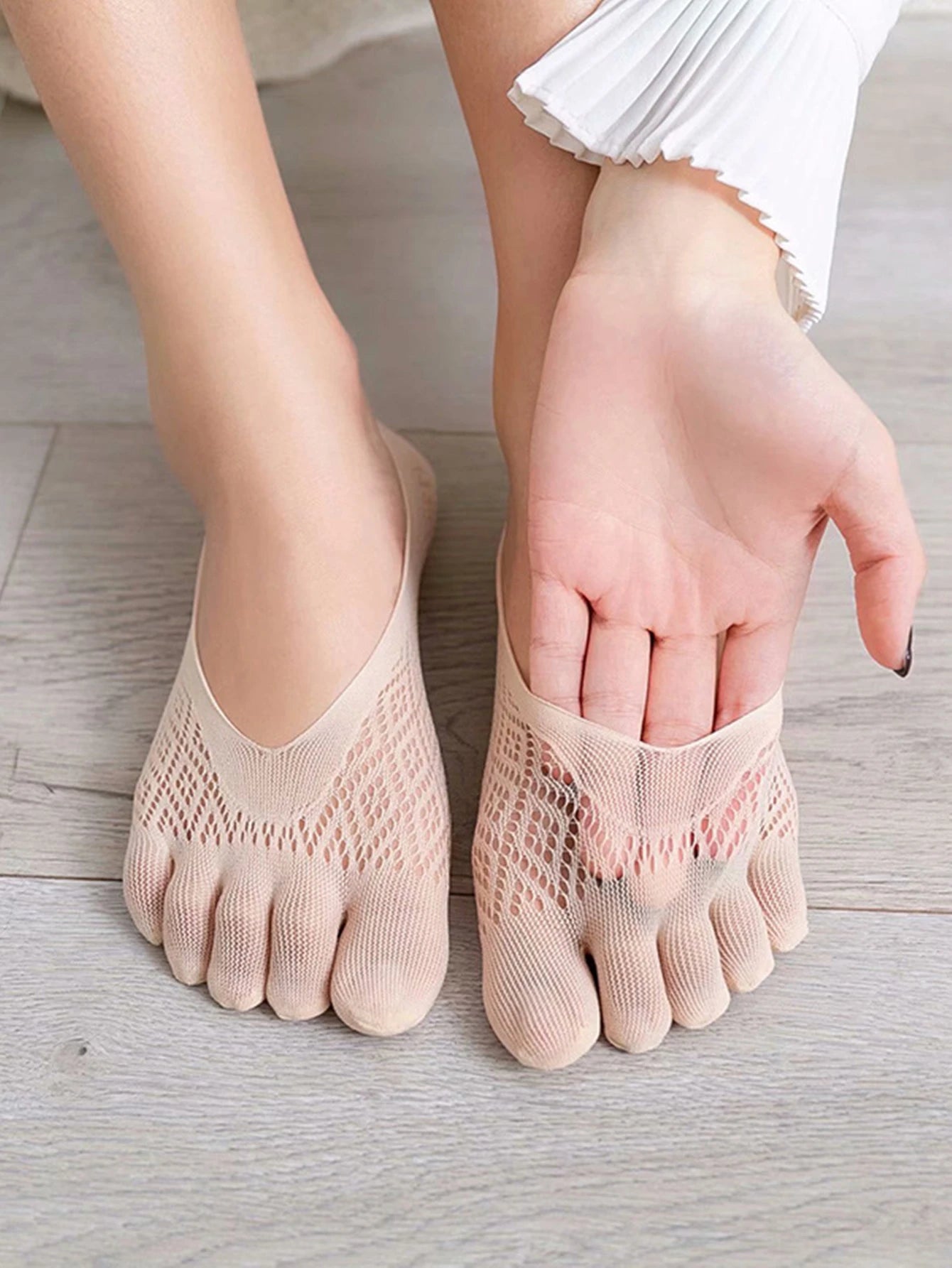 5 Pairs Summer Cotton Five Finger No Show Socks Ice Silk Sweat-Absorbent Thin Shallow Mouth Invisible Boat Socks