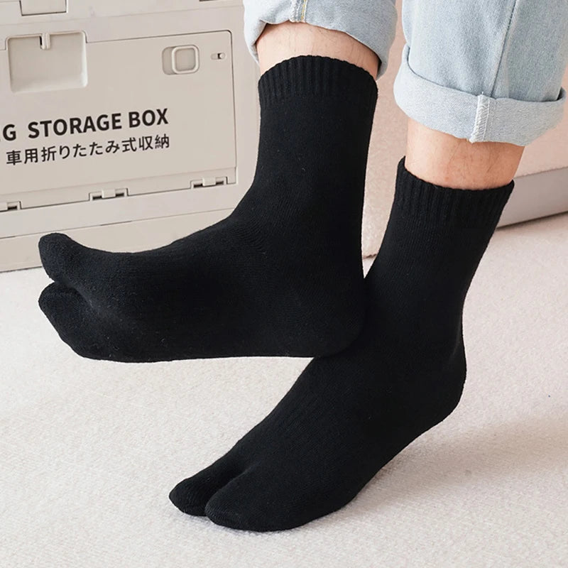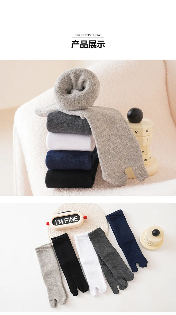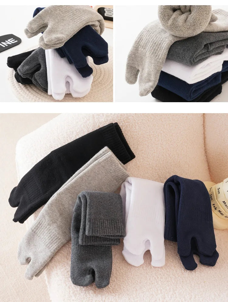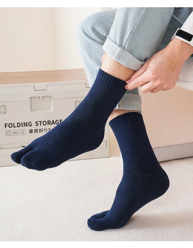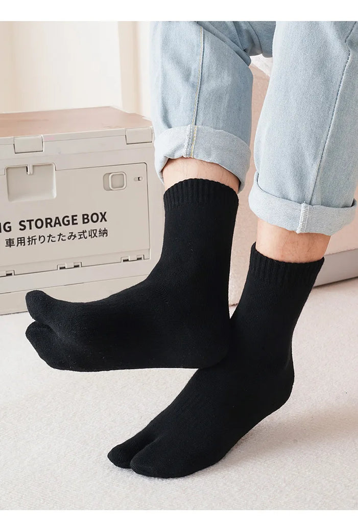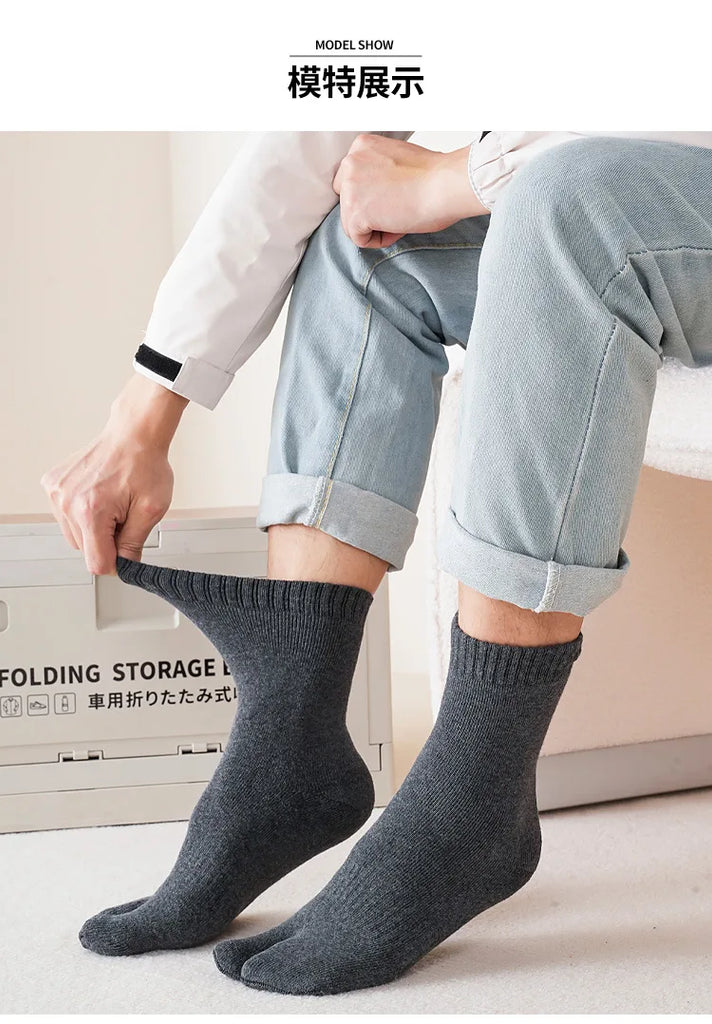 5 Pairs Men's Winter Thermal Tabi Socks 2-Toe Flip Flop Mid-Tube Warm Cotton Casual
