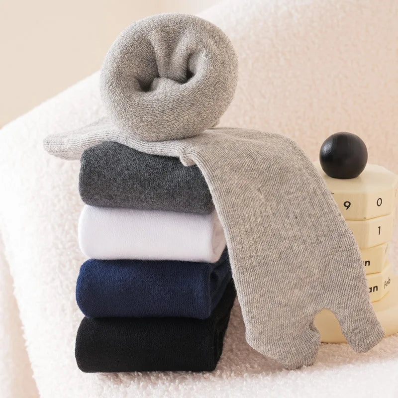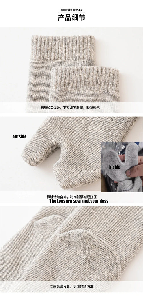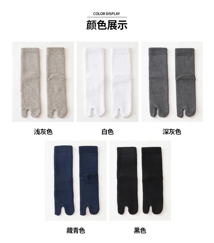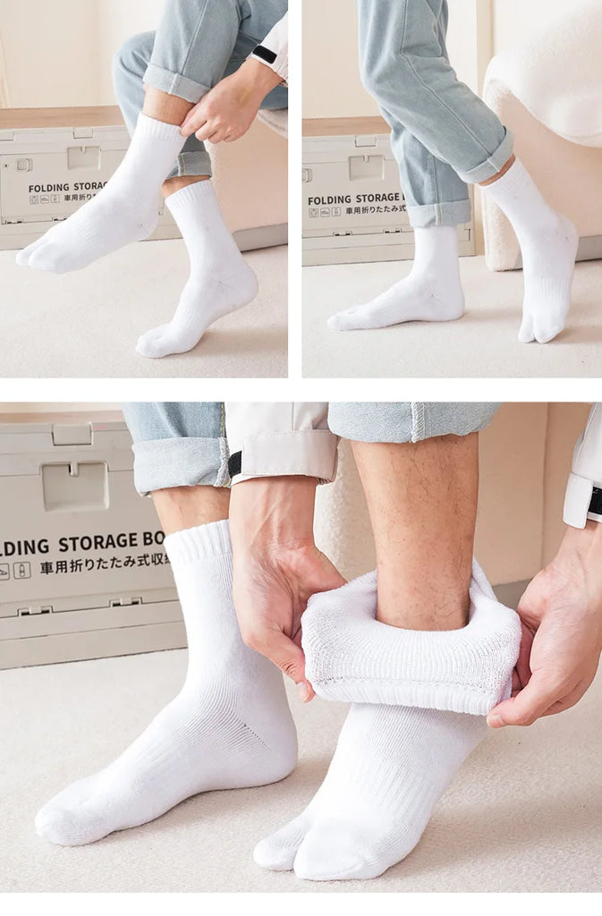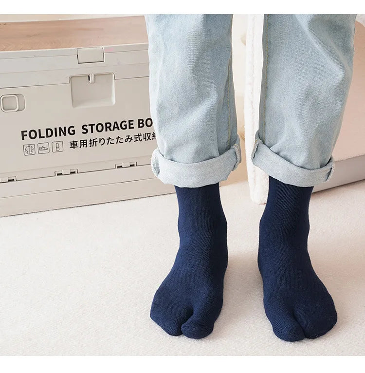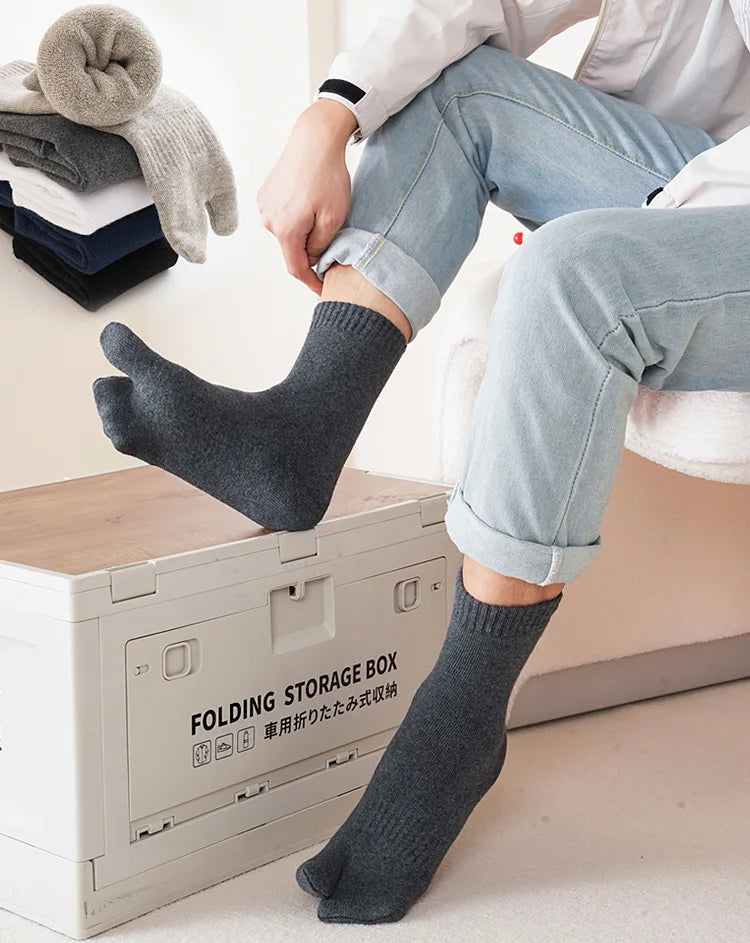 5 Pairs Men's Winter Thermal Tabi Socks 2-Toe Flip Flop Mid-Tube Warm Cotton Casual